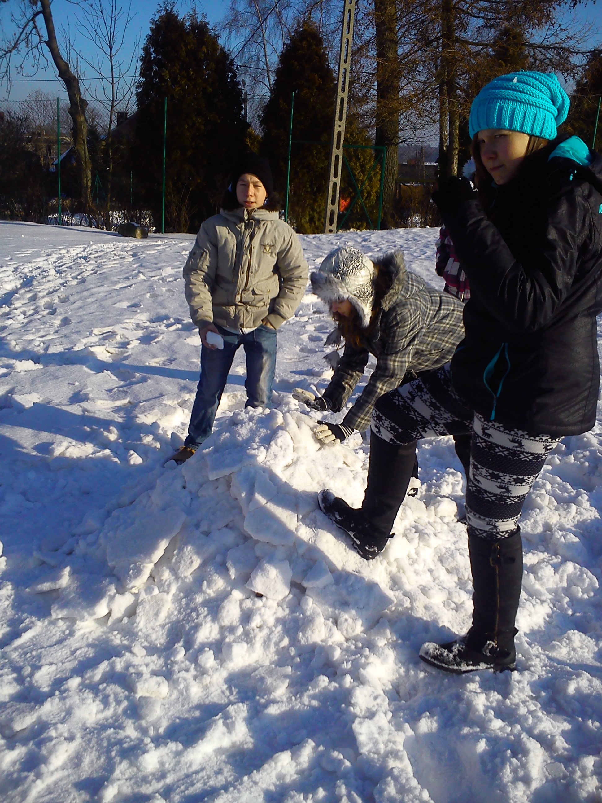 - we wtorek 4 lutego - dzieci korzystając z uroków zimy i ulepiły pięknego bałwanka.
