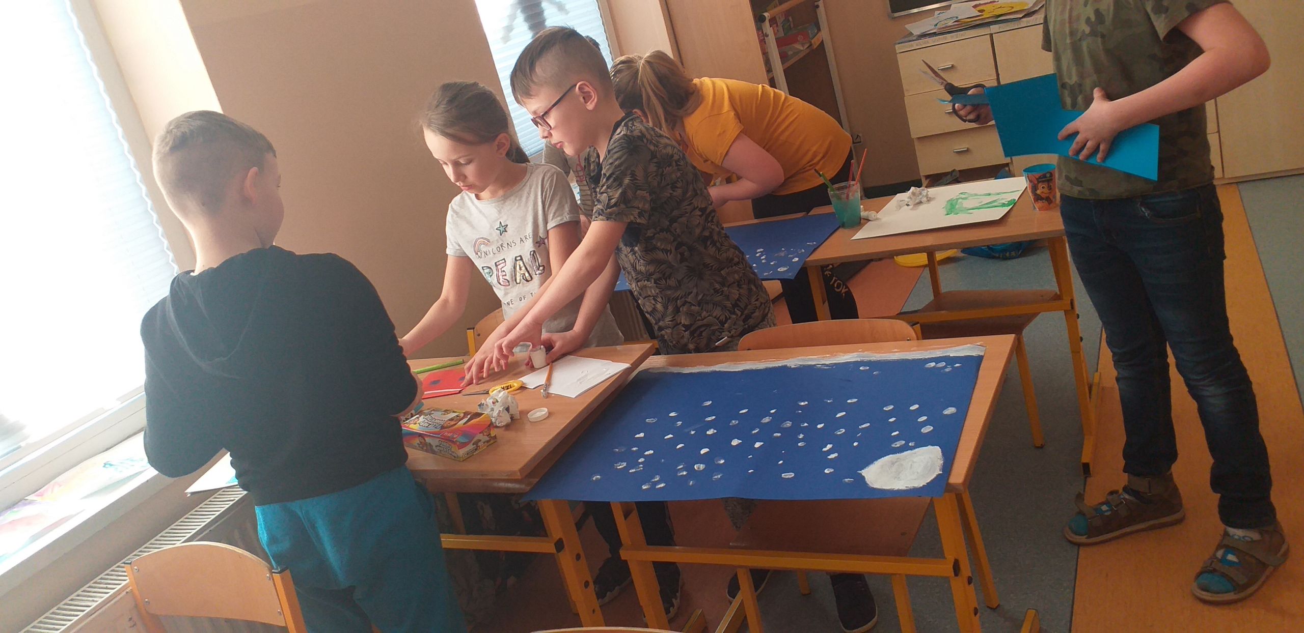 Mija nasz pierwszy miesiąc zajęć w świetlicy w Glinczu. Zdążyliśmy się już dobrze poznać podczas wspólnych zajęć. Korzystając jeszcze z karnawału zrobiliśmy kolorowe maski. Były też prace plastyczne związane z zimą. Dzieci malowały i wyklejały zimowe miasteczka. Bardzo wciągnęła ich ta praca, a efekty można obejrzeć na załączonych zdjęciach.