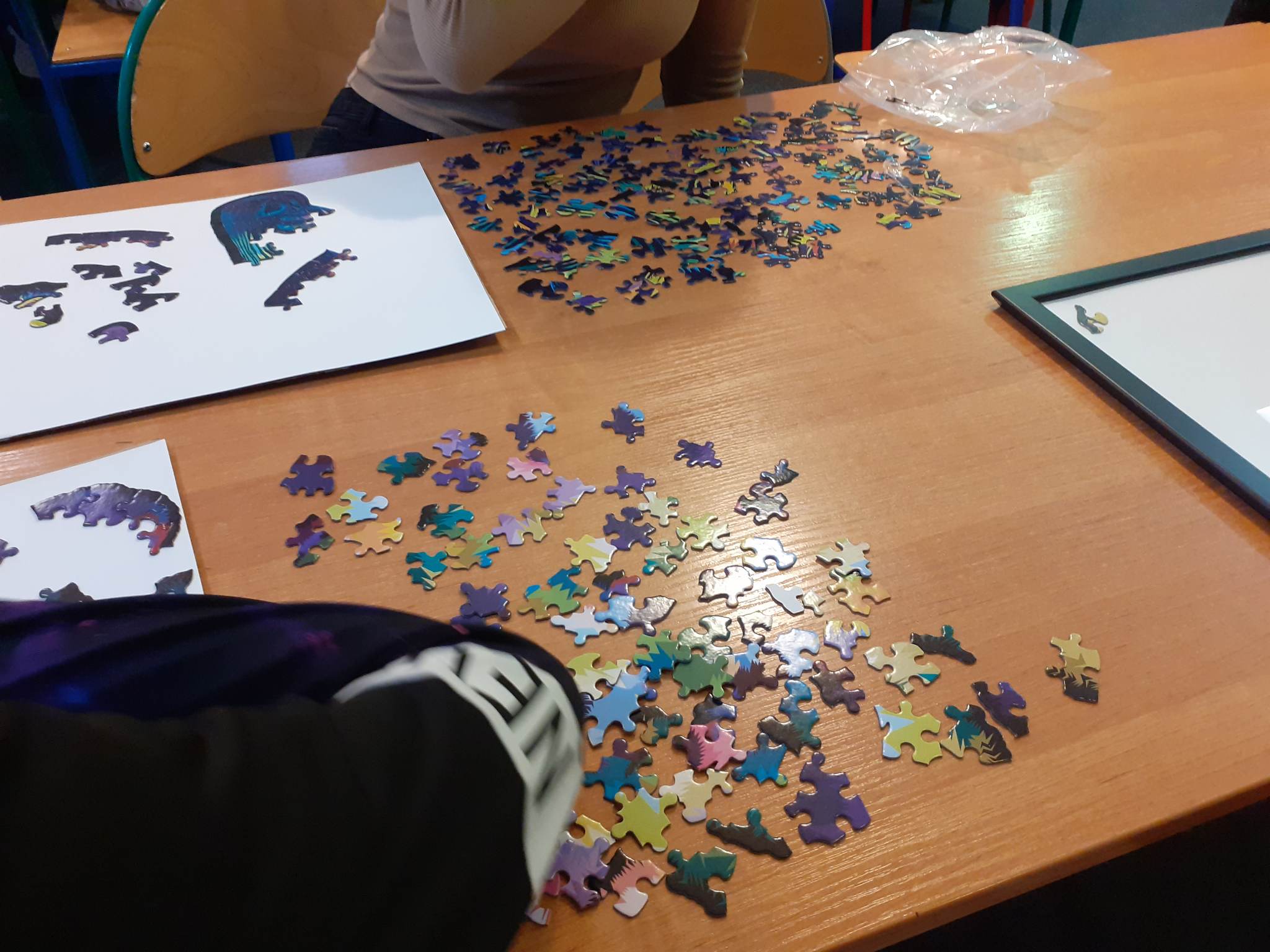 Były także zajęcia kulinarne, gry i zabawy. Każdy ułożył swój własny obraz z puzzli – nie było łatwo bo to wymagające puzzle. Efekt jednak wart był wysiłku.