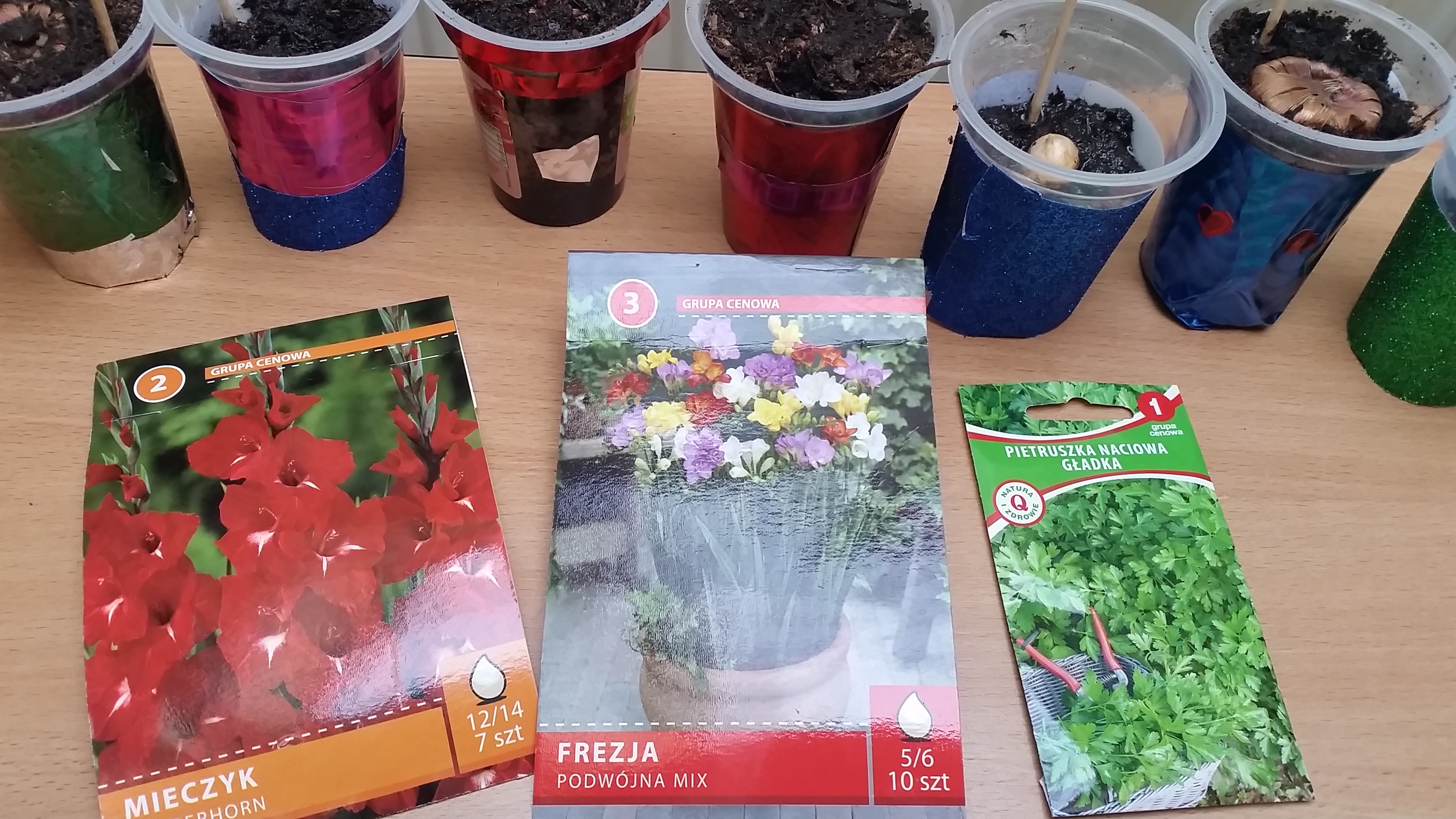 W kwietniu dzieci ze świetlicy w Borkowa miały okazję stać się ogrodnikami. Ich zadaniem było posianie nasion i posadzenie cebulek kwiatów. Najpierw omówiliśmy co takie nasiono, cebulka potrzebują do tego, aby mogły urosnąć. Następnie dzieci chętnie wzięły się do pracy. Najpierw każdy ozdobił swój kubeczek, później nasypali do niego ziemi, wsadzili cebulkę, posiali ziarenka i podlali. Na końcu każdy wykonał etykietę do swojej roślinki.