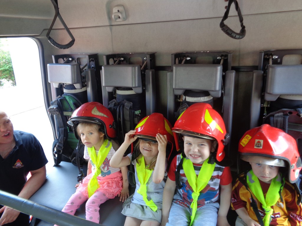 Z okazji Międzynarodowego Dnia Strażaka w miniony piatek nasze maluchy z grupy „Radosne Krasnale” zostały zaproszone do Jednostki Ratowniczo-Gaśniczej nr 1 w Gdańsku Wrzeszczu. Strażacy oprowadzali dzieci po jednostce, pokazali sprzęt gaśniczy, zaprosili do wozu strażackiego, każdy miał okazję przymierzyć hełm oraz bardzo ciężkie buty. Maluchy odwiedziły także część muzealną, w której stały wozy z dawnych lat. Jednak największą atrakcją było gaszenie „pożaru” prawdziwym wężem gaśniczym.