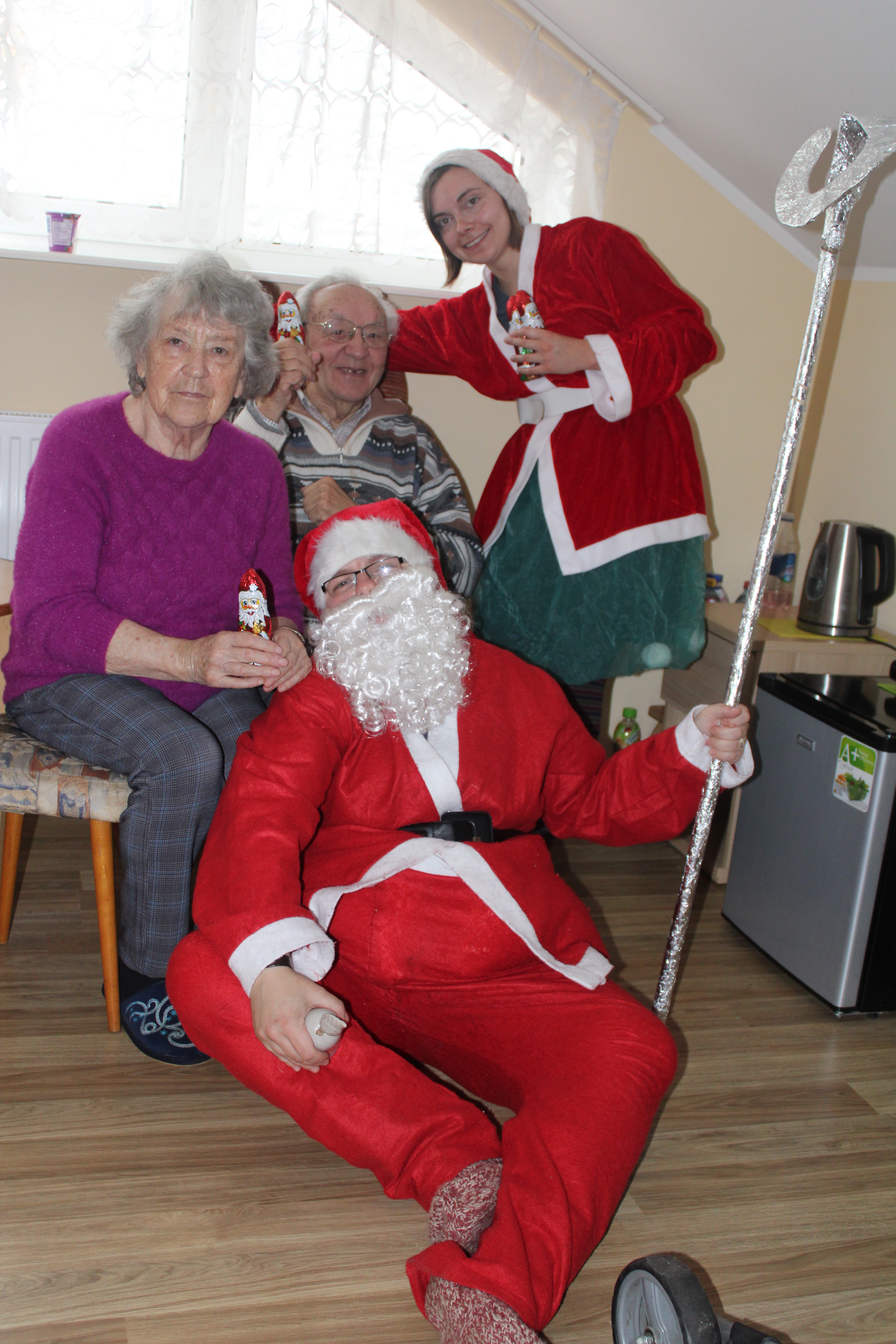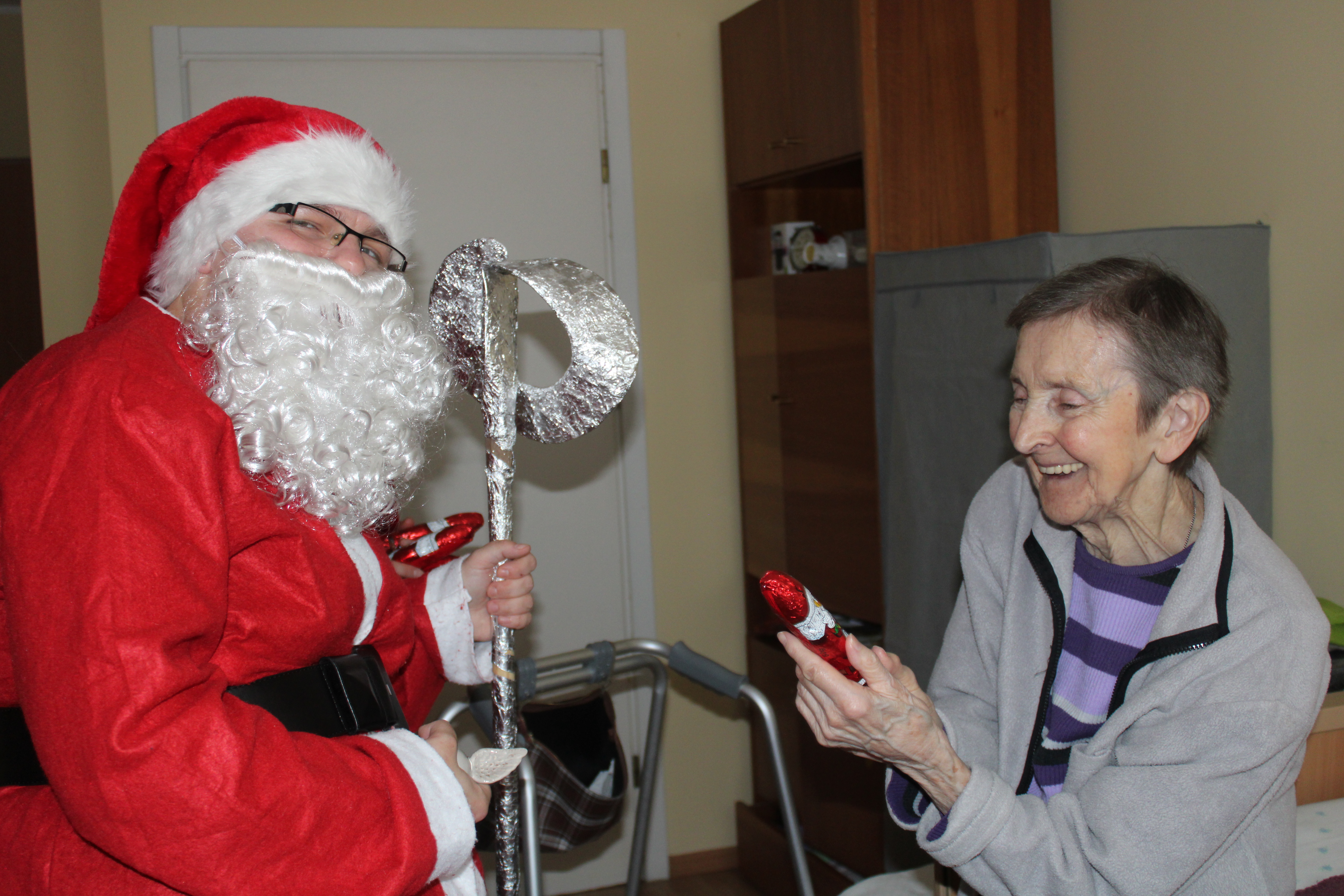 6 grudnia to dzień, w którym wspomina się postać Świętego Mikołaja, według tradycji obdarowującego wszystkich prezentami. Z tej okazji do Centrum Pomocowego Caritas na Fromborskiej przybył Święty Mikołaj, któremu towarzyszył Anioł oraz Elf. Odwiedzili wszystkich Seniorów i każdemu wręczyli słodki upominek. Ci niezwykli Goście sprawili, że była to radosna i jednocześnie wzruszająca chwila dla Mieszkańców Naszego Domu oraz okazja do rozmowy i zrobienia sobie pamiątkowego zdjęcia. Mamy nadzieję, że Święty Mikołaj odwiedzi nas także za rok, na co czekamy z niecierpliwością.