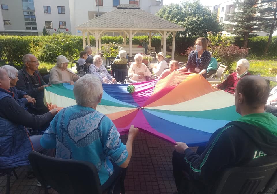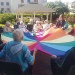 Takie przedpołudnia lubimy najbardziej.Na naszym niebie pojawiło się piękne słońce, więc wyszliśmy do naszego ogrodu. A tu… dla każdego coś miłego : zumba, ćwiczenia z chustą animacyjną, robótki ręczne czy po prostu kawa w miłym towarzystwie.