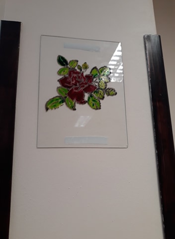Na szkle, które zostało z kolorowych ramek, stworzyliśmy obrazki, które ozdobią Naszą świetlicę.