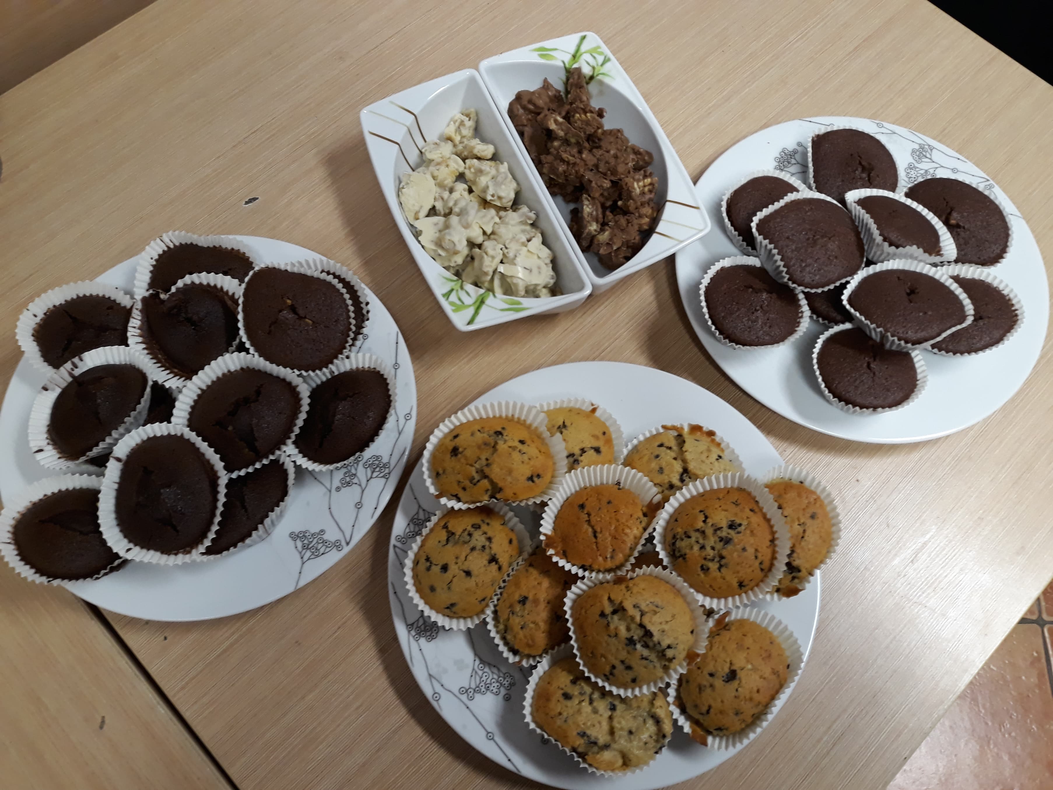 Młodsza grupa z pomocą starszej (nieocenionej i wspanialej) przygotowała słodki poczęstunek: ciasto czekoladowe, maślankowe z gruszką, muffinki oraz orzechy włoskie w białej i brązowej czekoladzie. Zrobiliśmy również kompot z jabłek.