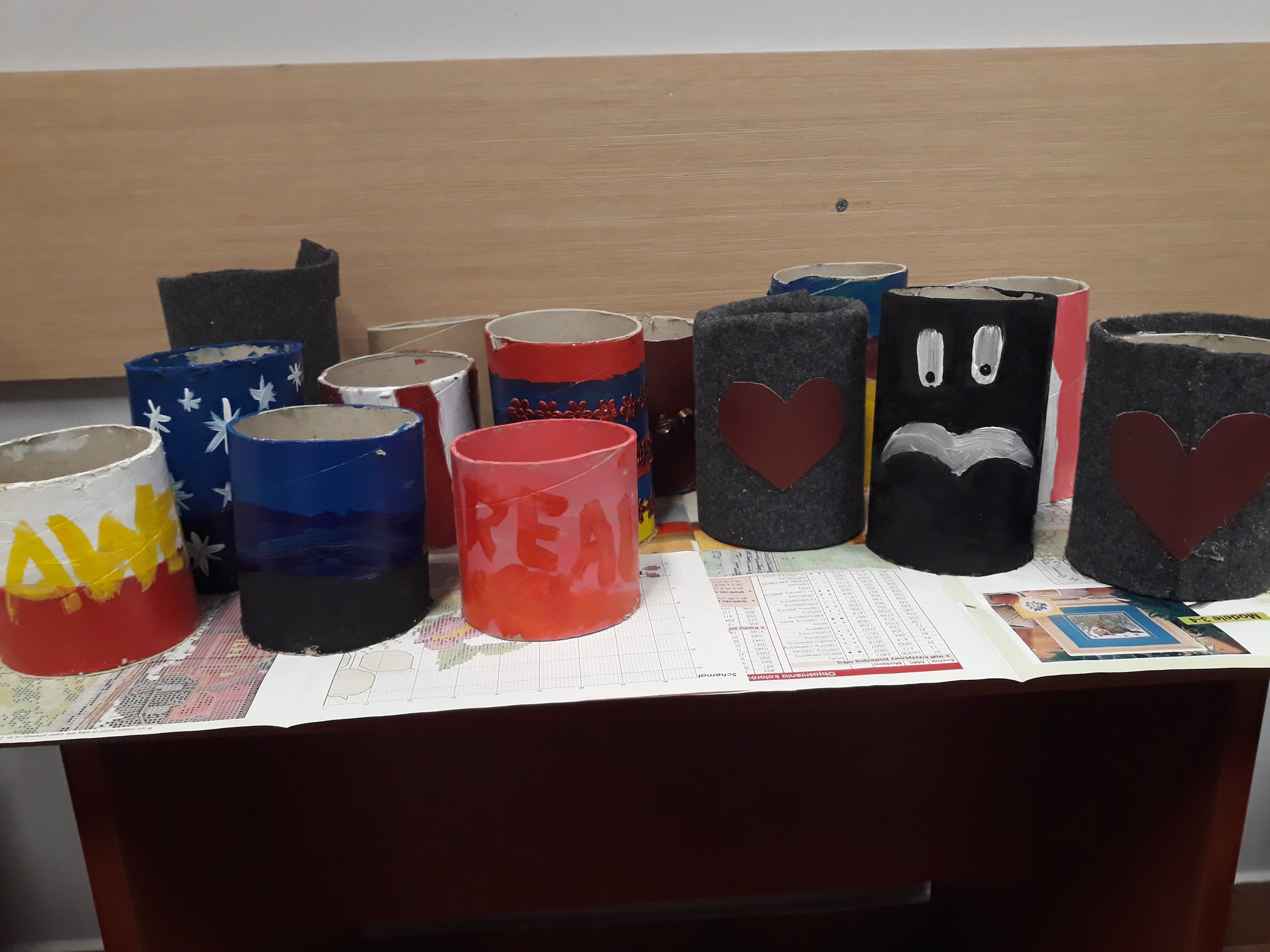 Grupa młodzieżowa na zajęciach plastycznych, stworzyła organizery, pudełka na kredki oraz kosmetyki.