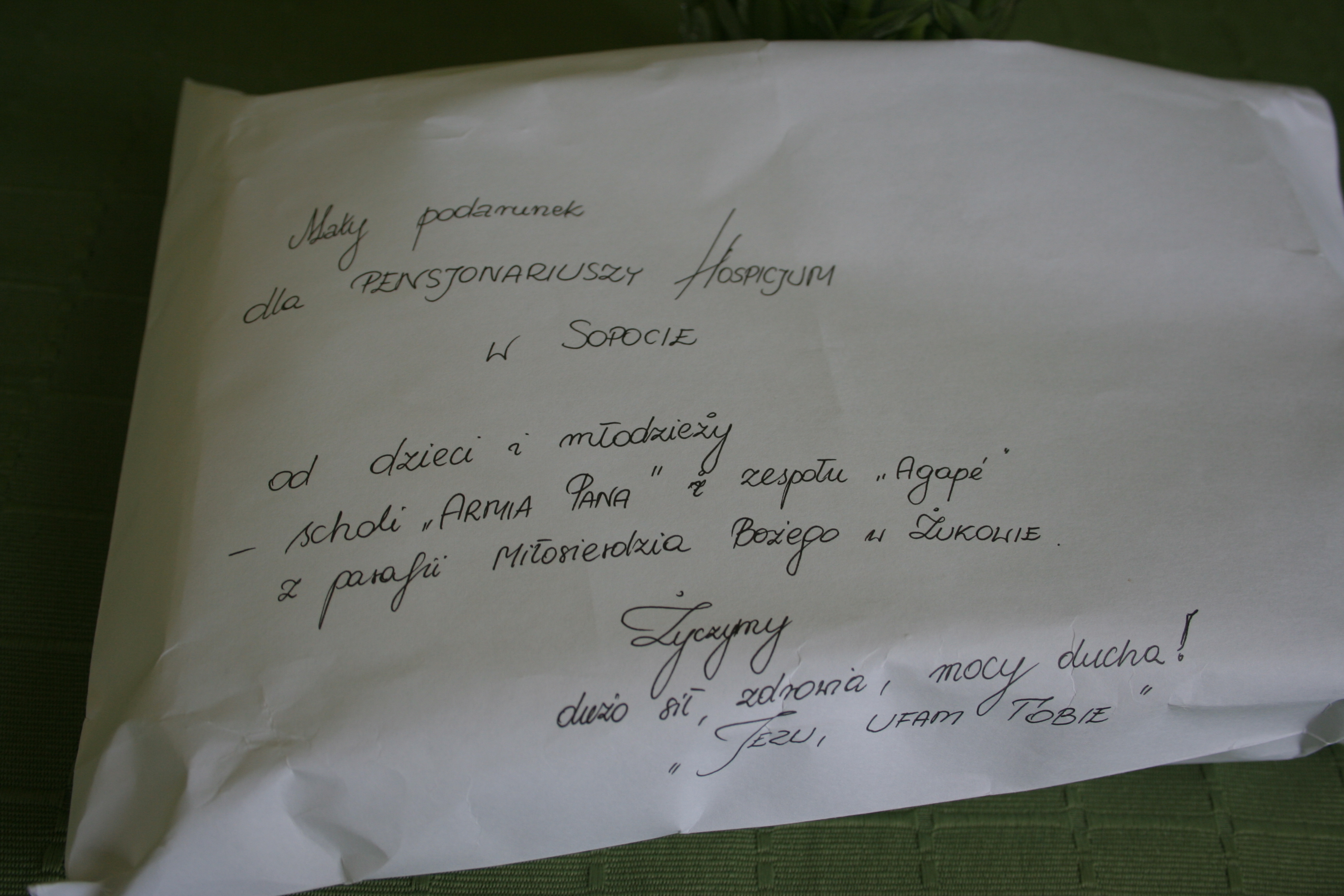Oto jaką muzyczną paczkę otrzymaliśmy od Scholi Armia Pana oraz zespołu Agape z parafii Miłosierdzia Bożego w Żukowie! Dziękujemy za to, że naszą przestrzeń mogą teraz wypełniać Wasze dźwięki! 🙂