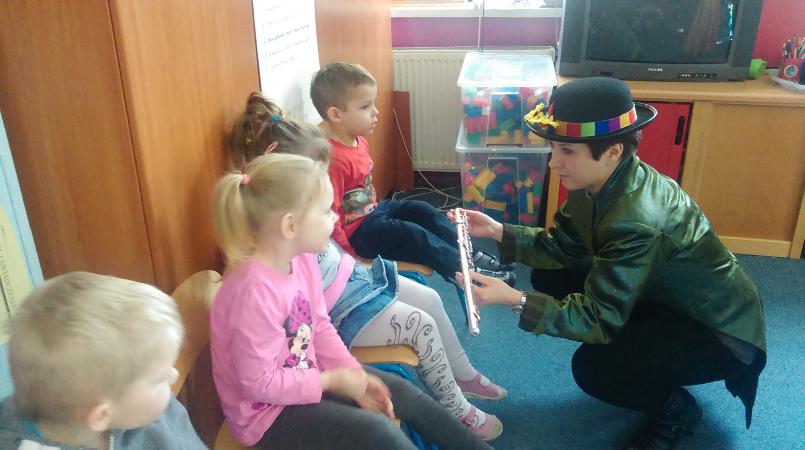 We wtorek maluchy z grupy „Radosne Krasnale” bawiły się na koncercie pt. „Mrówki, mrowisko i mrowie kłopoty”. Koncert prowadzony był przez artystów Agencji Artystycznej „Pro Musica”. Dzieci wysłuchały opowieści, której towarzyszyła muzyka fletu, altówki i wiolonczeli. Muzycy opowiadali także o swoich instrumentach.
