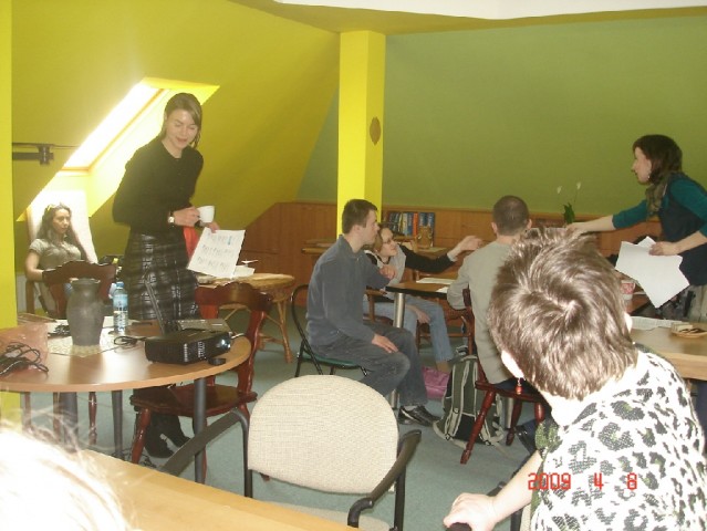 W dniu 08.04.2009 w Klubie Wsparcia w centrum Pomocowym O. Pio w Gdyni odbyło się spotkanie uczestników projektu My też potrafimy się odnaleźć z panią Mają Czerniak – psycholog specjalizującą się w zarządzaniu zasobami ludzkimi. Uczestnicy otrzymali obszerne informacje dot. rozmowy kwalifikacyjnej. Pani Maja zapoznała uczestników z regułami jakimi rządzi się rozmowa kwalifikacyjna, z przygotowywaniem dokumentów aplikacyjnych. Beneficjenci mieli możliwość obejrzenia krótkich filmów instruktażowych oraz wzięli udział w ćwiczeniach relaksacyjnych pomagających uporać się ze stresem.