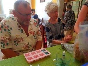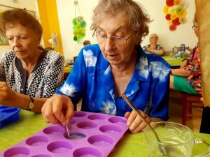Dzięki pomysłowi młodzieży ze Świetlicy Pod Kasztanami, na Dolnej zrealizowaliśmy projekt Mydlany Świat. Seniorzy zrobili mydełka w ciekawych kształtach, do których dodali pachnące olejki, barwniki i suszone kwiaty. Efekty na zdjęciach