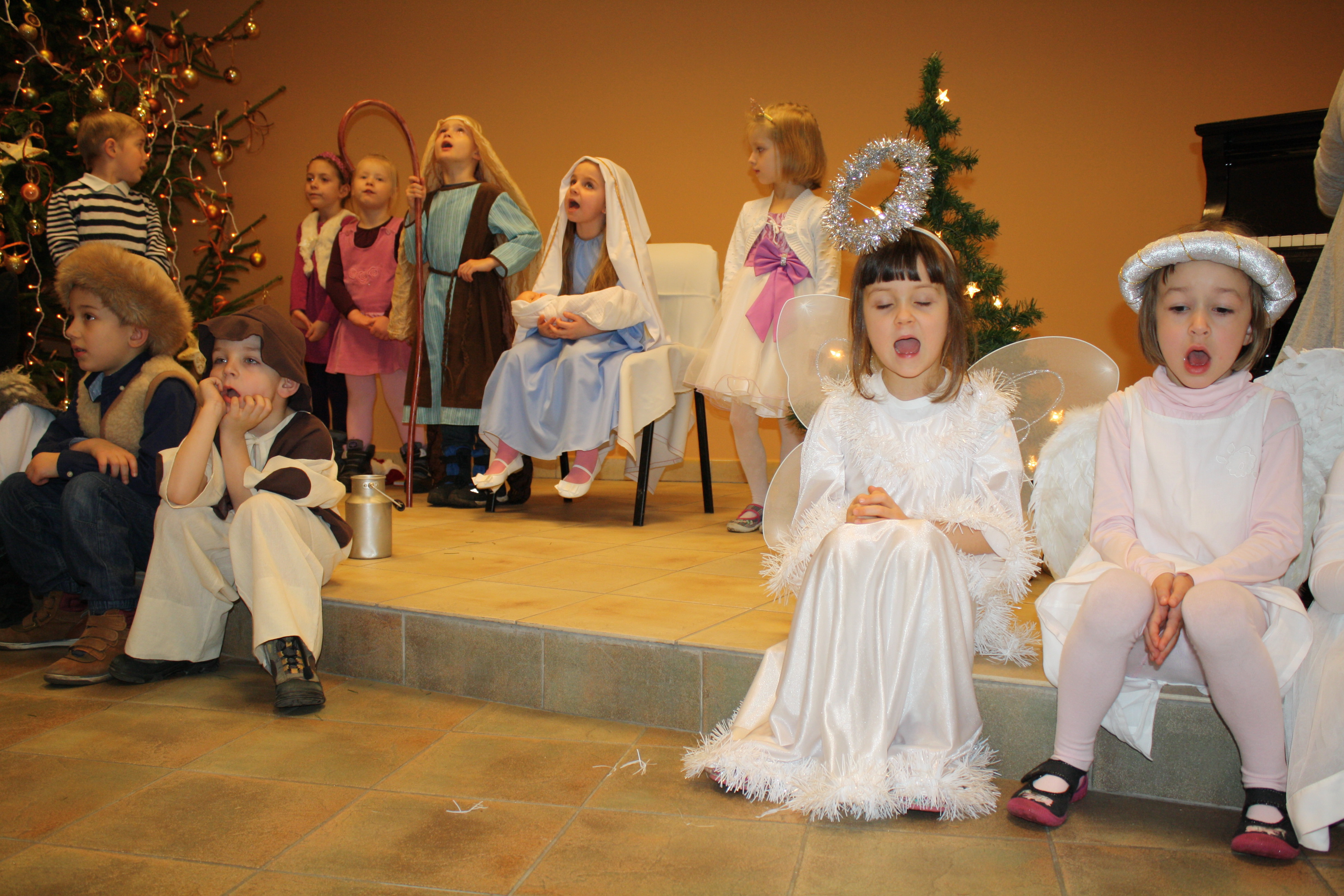 We wtorek (16 grudnia)  w naszym Centrum zrobiło się bardzo gwarnie i radośnie za sprawą maluchów z grupy 4 i 5 – latków z Przedszkola „Stokrotka” w Gdańsku. Dzieci wraz ze swoimi opiekunami odwiedziły naszych seniorów z przygotowanym przez siebie przedstawieniem o tematyce bożonarodzeniowej. Na scenie w jadalni placówki pojawiły się cudne aniołki, radośni pastuszkowie, dostojni trzej królowie oraz święta rodzina. Z ogromną radością i wielkim entuzjazmem ogłaszali oni wszystkim obecnym, że już niedługo Boże Narodzenie na które zawsze z takim utęsknieniem czekamy! Młodzi artyści wykazali się ogromnym profesjonalizmem oraz nieprzeciętnymi talentami i umiejętnościami, które w pełni zaprezentowali podczas przedstawienia. Były zatem wiersze, piosenki i kolędy, życzenia a nawet uroczy taniec aniołków, wszystko oczywiście utrzymane w konwencji bożonarodzeniowych jasełek. Ogromnym wsparciem dla maluchów były panie przedszkolanki: Zyta Kandziora, Anna Kiżewska, Barbara Drogoś i Danuta Król,  które czuwały nad sprawnym i zgodnym ze scenariuszem przebiegiem występu. Wiele trudu włożyli również rodzice występujących dzieci, którzy  przygotowali piękne kostiumy i ćwiczyli role ze swoimi pociechami. Przedstawienie spotkało się z entuzjastycznym przyjęciem ze strony seniorów. Były gromkie brawa, słowa uznania a nawet łzy wzruszenia. Na bis mali artyści wraz z zebraną publicznością wspólnie zaśpiewali jedną z kolęd a  na zakończenie w dowód wdzięczności za piękny występ otrzymali od nas drobny upominek. Serdecznie dziękujemy przedszkolakom za to przedświąteczne spotkanie! Wniosło ono do naszego Centrum wiele radości i pozytywnej energii. Przypomniało nam również, że święta zbliżają się do nas coraz większymi krokami i czas zacząć się do nich intensywnie przygotowywać!
