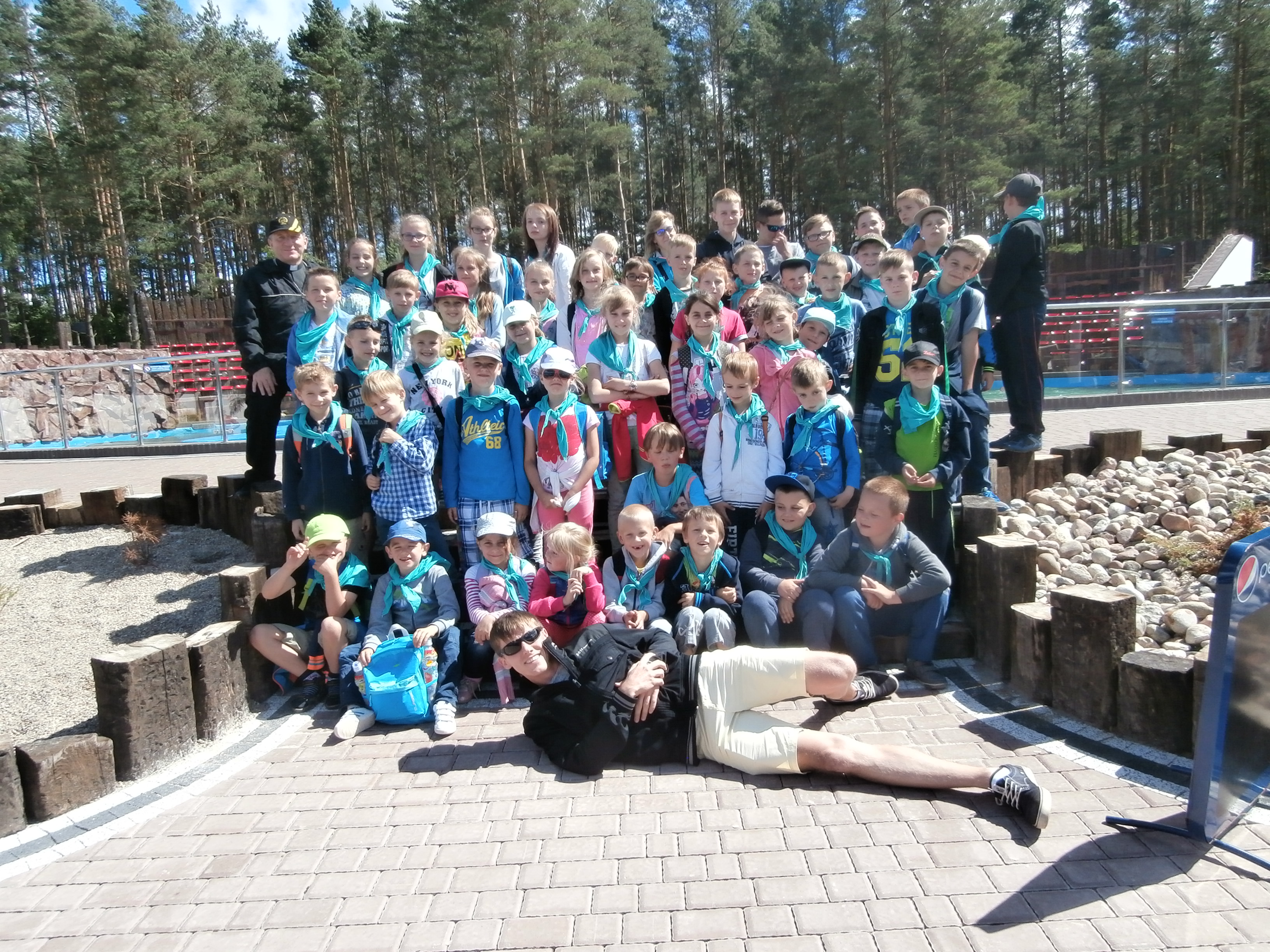 Największą atrakcją dla dzieci była prezentacja karmienia fok szarych i uchowatych kotiki południowo amerykańskie. W czasie treningu medycznego foki uczą się pewnych czynności, mają imiona. Na polecenie trenerów wykonują określone czynności, piruety, bawią się piłką i kółkiem ringowym. Nasze dzieci miały możliwość uczestniczyć w tych pokazach dwukrotnie. Następną atrakcją było prehistoryczne oceanarium 3D, w którym można stanąć „oko w oko” ze stworzeniami zamieszkującymi wody naszej planety miliony lat temu. Atrakcją dla małych dzieci były „rozmowy” z wielorybem Błękitkiem. Ciekawe ekspozycje pokazuje kolekcja Muzeum marynistycznego związanymi z PLO Gdynia. Atrakcją jest mesa kapitana Morgana. Wartym odwiedzenia jest park makiet zwierząt morskich takich, jak: płetwal błękitny 38 mb, rekin wielorybi, żarłacz biały, rekin młot, ryba piła, manta, żółw skórzasty, kałamarna olbrzymia 18 mb – jest to świetna okazja do robienia zdjęć. Znajduje się tam również park miniatur latarni morskich wykonany z detalami – od Krynicy Morskiej do Świnoujścia. Atrakcją dla najmłodszych był park zręcznościowo-liniowy Małego Pirata, Gaj Małego Pirata na Galeonie Wodnik. Mniejsze dzieci pięknie bawiły się na placu z kolejką. Z zaciekawieniem dzieci oglądały Mini Zoo z różnymi ptakami. Dzieci zwiedzały Wrak na Wspak –statek odwrócony do góry dnem, jest to replika szwedzkiego okrętu wojennego Stolen, który został zatopiony przez Polski Galeon Wodnik w bitwie pod Oliwą. Pogoda dopisała ,a jak trochę padało to było się gdzie schować. Nasze dzieci pełne radości i wrażeń dziękują Wójtowi Gminy Szemud za otrzymane dofinansowanie wycieczki.