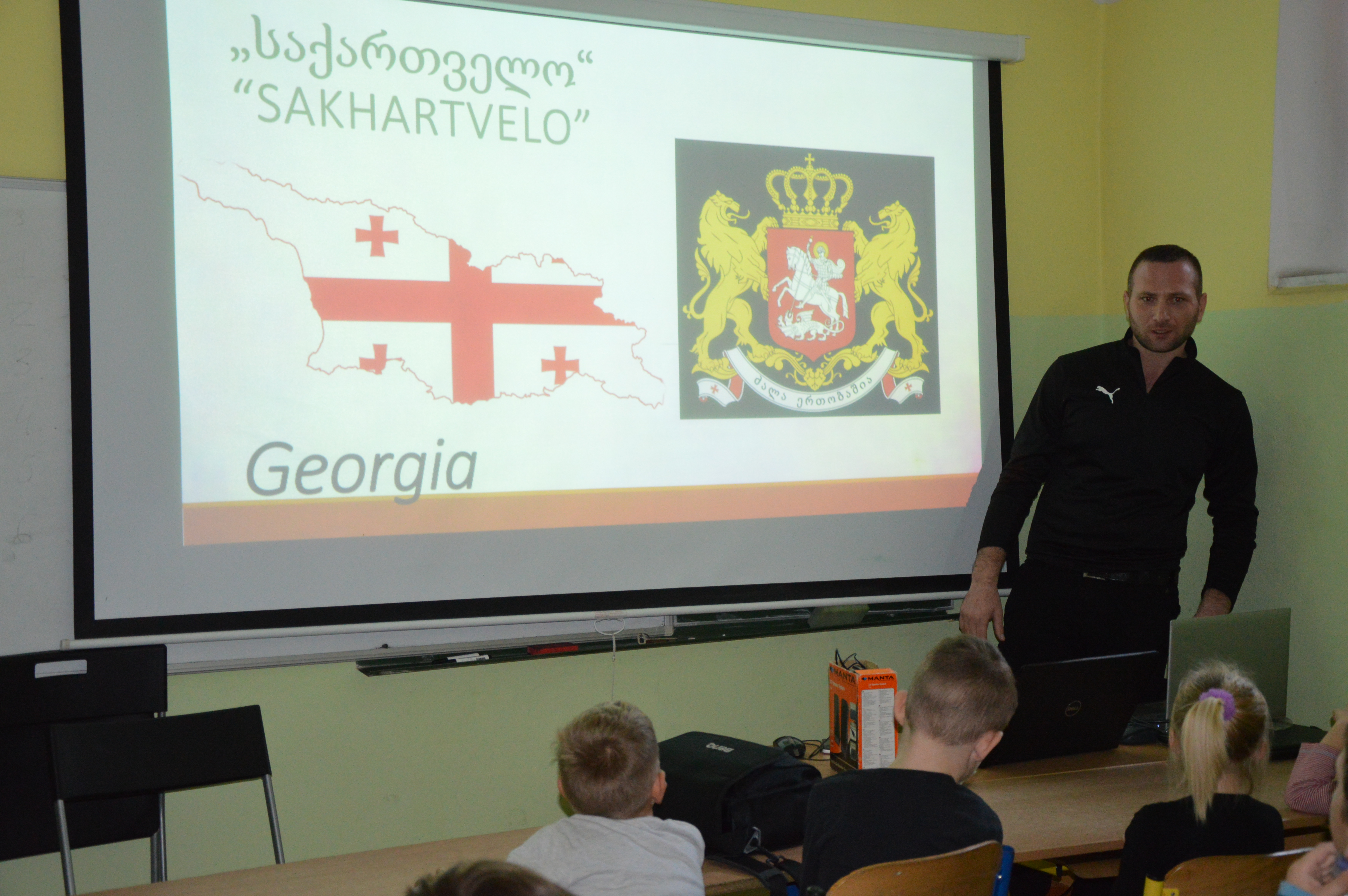 W ostatni piątek dwójka naszych wolontariuszy zagranicznych – Natascha z Białorusi i Irakli w Gruzji odwiedzili Pępowo i poprowadzili zajęcia dla dzieci z naszej świetlicy, która mieści się w tamtejszej szkole. Dzieci były bardzo podekscytowane wizytą i jak się okazało – świetnie przygotowane. Wiedziały m.in. jakie barwy mają flagi obu państw, jakimi językami się tam mówi, a nawet jak nazywają się stolice. Największe zainteresowanie wzbudziły gruzińskie potrawy – zwłaszcza chaczapuri, khinkali, no i oczywiście. Na koniec zostało nam trochę czasu na wspólne gry i zabawy. Kolejne wizyty w świetlicach żukowskich już w przyszłym tygodniu.
