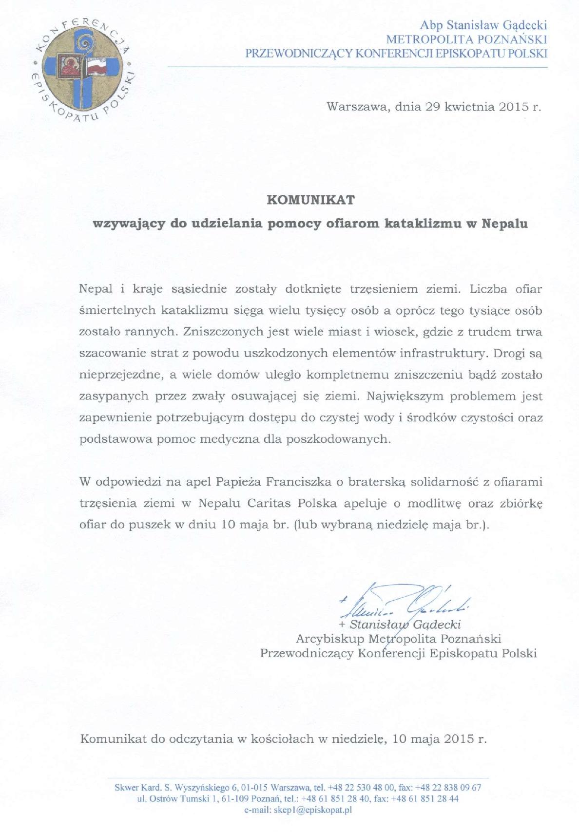 Do udzielenia pomocy zachęca nas JE Ks. Abp Sławoj Leszek Głódź i JE Ks. Abp Stanisław Gądecki.