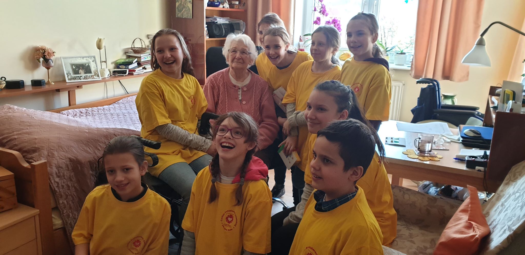 Takie momenty jak ten krótki występ dzieci dla naszych seniorów sprawiają, że każdy ciężar staje się lekkim. Dzieci pytały Mieszkańców o ich historie, o to jacy byli i jak żyli, gdy byli w ich wieku. To z pozoru zwykle spotkanie było w pewnym sensie okazją do rozwijania umiejętności rozmowy i współdziałania, przekraczania barier i  doświadczeń – i to wszystko mam przyjemność obserwować od jakiegoś czasu.  Seniorzy i uczniowie  w naszym domu podejmują właśnie takie działania, by przełamywać obojętność i z biorców stają się też dawcami.