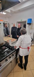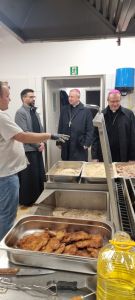 Ks. abp Tadeusz Wojda SAC rozpoczął Niedzielny Obiad wspólną modlitwą ze zgromadzonymi osobami w kryzysie bezdomności i ubogimi.