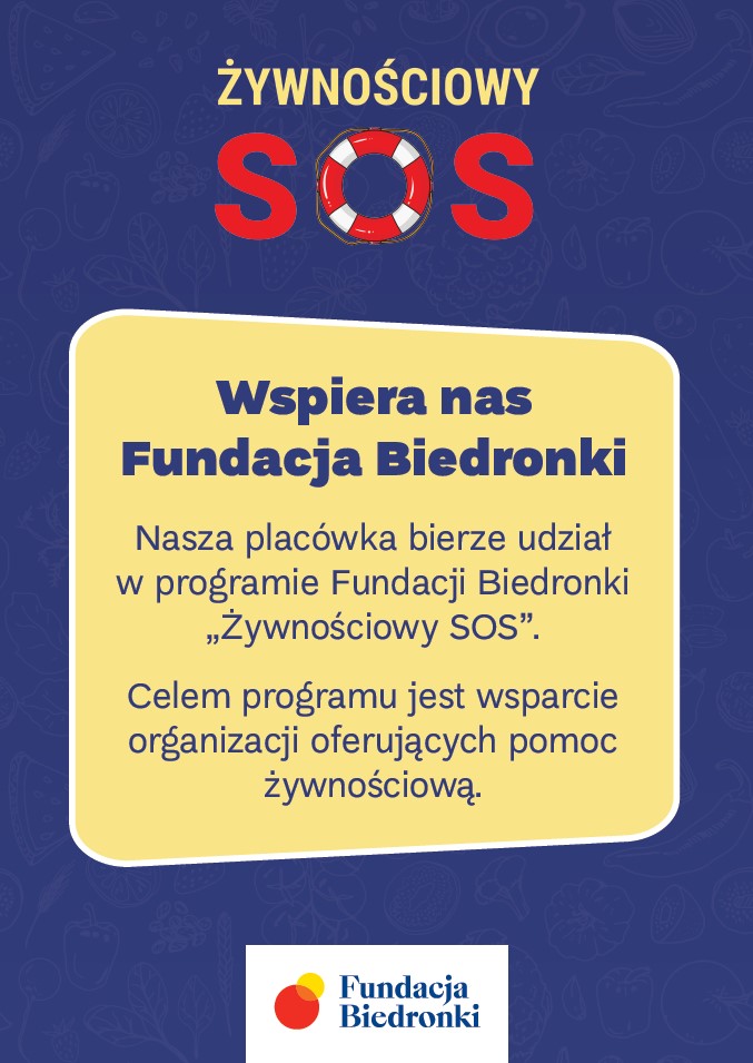 Dodatkowo dzięki wsparciu Fundacji Biedronka w kolejnej edycji programu „Żywnościowego SOS” możliwe jest również wsparcie potrzebujących w jadłodajni w Centrum Pomocowym im. św. Siostry Faustyny w Rumi.