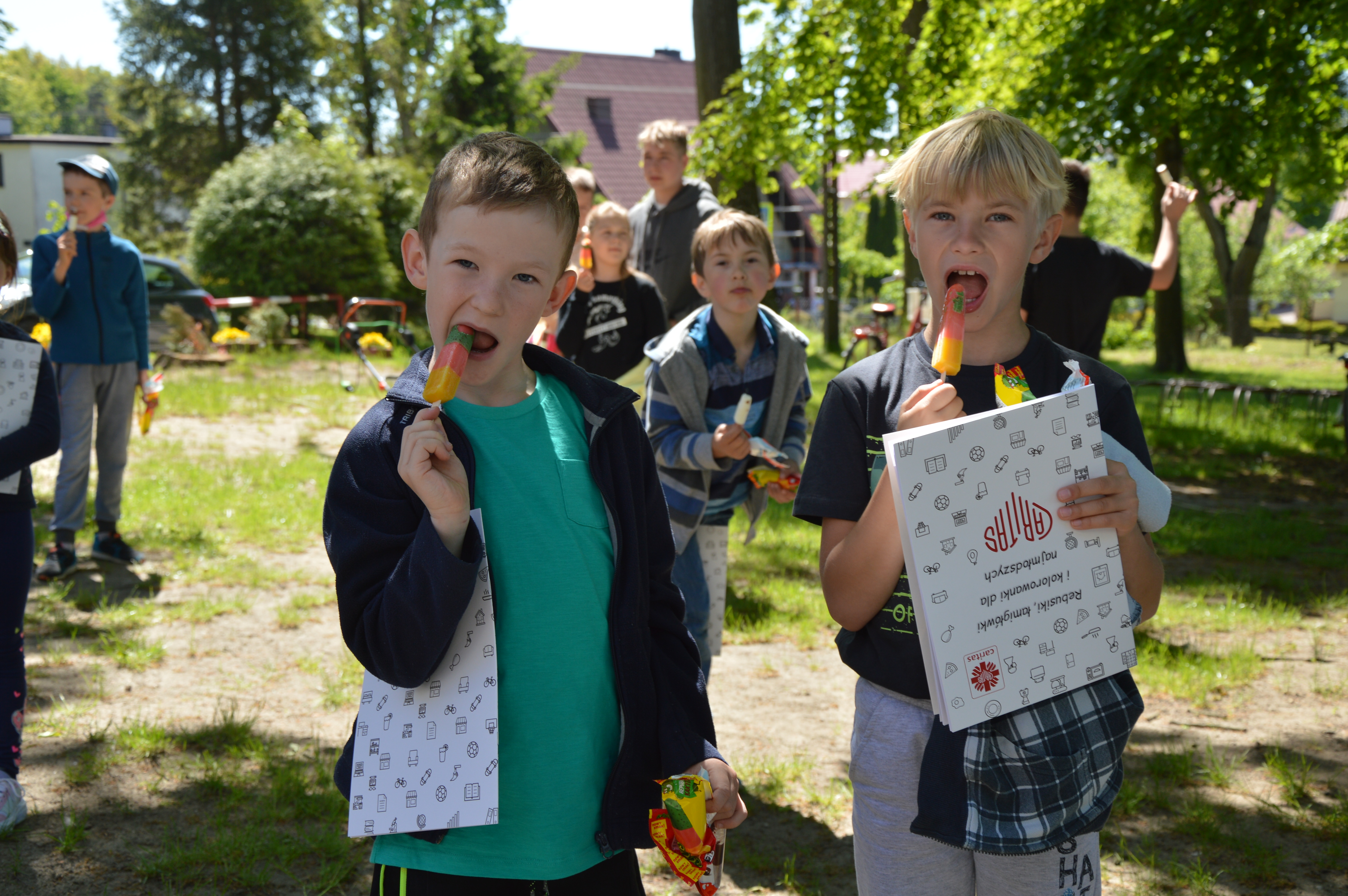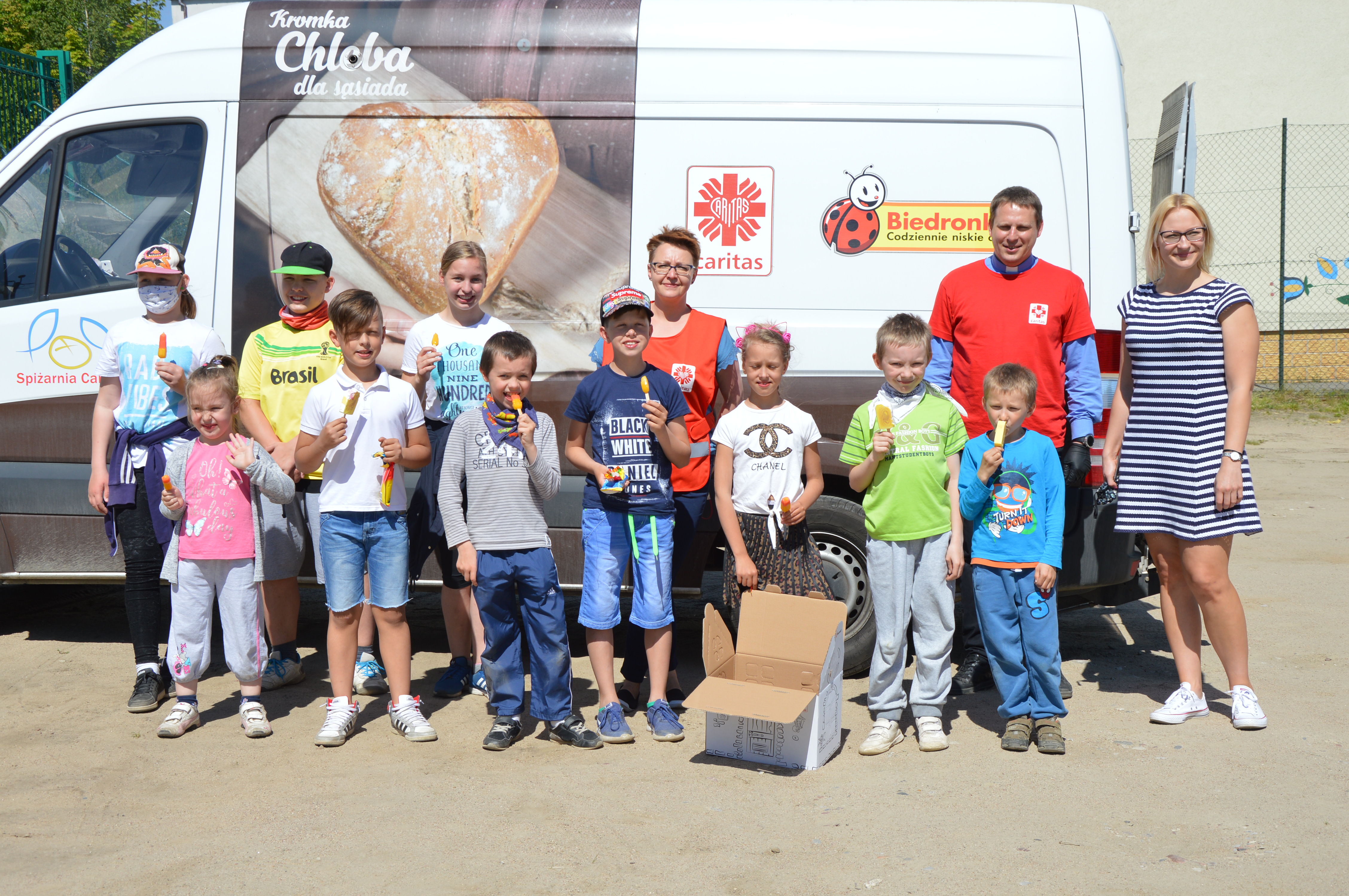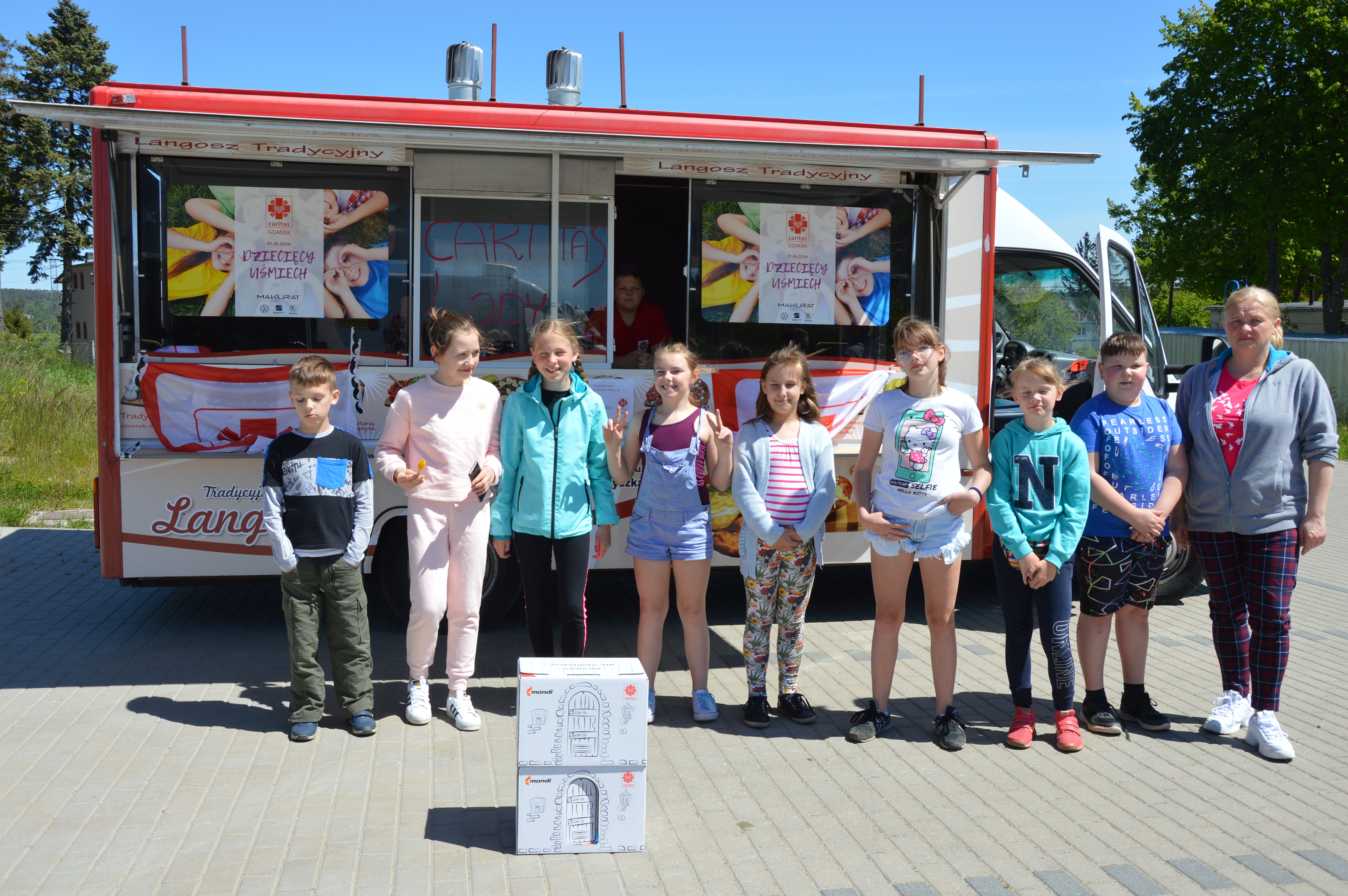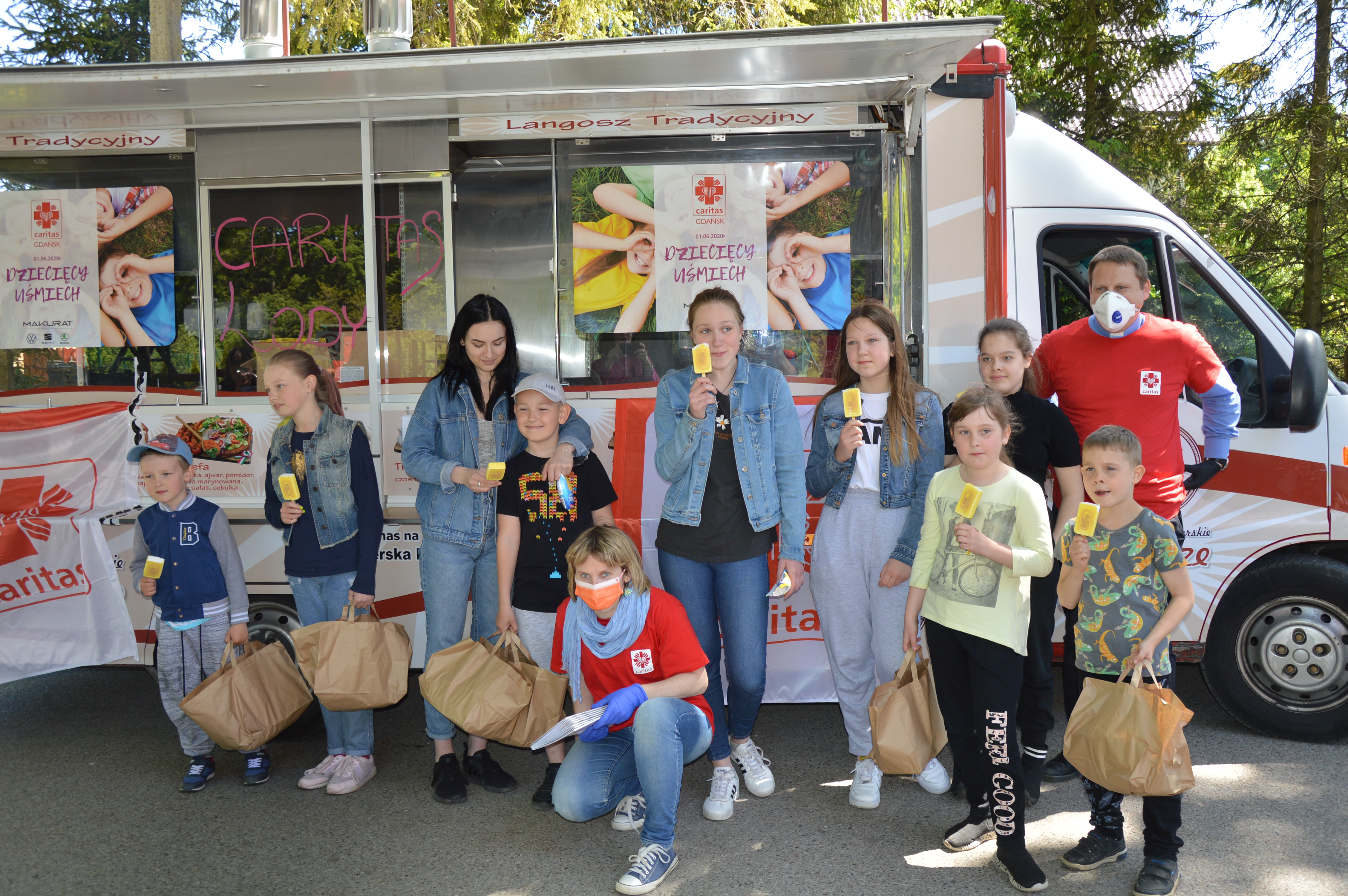 Wczoraj z okazji Dnia Dziecka odwiedziliśmy wszystkie miejscowości na terenie gminy Żukowo, gdzie znajdują się świetlice prowadzone przez Caritas. W ostatnich miesiącach zajęcia w świetlicach były zawieszone, ale bardzo chcieliśmy sprawić radość naszych starszym i młodszym podopiecznym w dniu ich święta. I udało się! W samo południe „lodziarnia Caritas” ruszyła w teren. Po drodze odwiedziliśmy: Pępowo, Leźno, Niestępowo, Widlino, Łapino, Przyjaźń, Skrzeszewo, Borkowo, Żukowo, Miszewo, Tuchom i Chwaszczyno. W każdej z miejscowości witały nas uśmiechnięte dzieciaki.