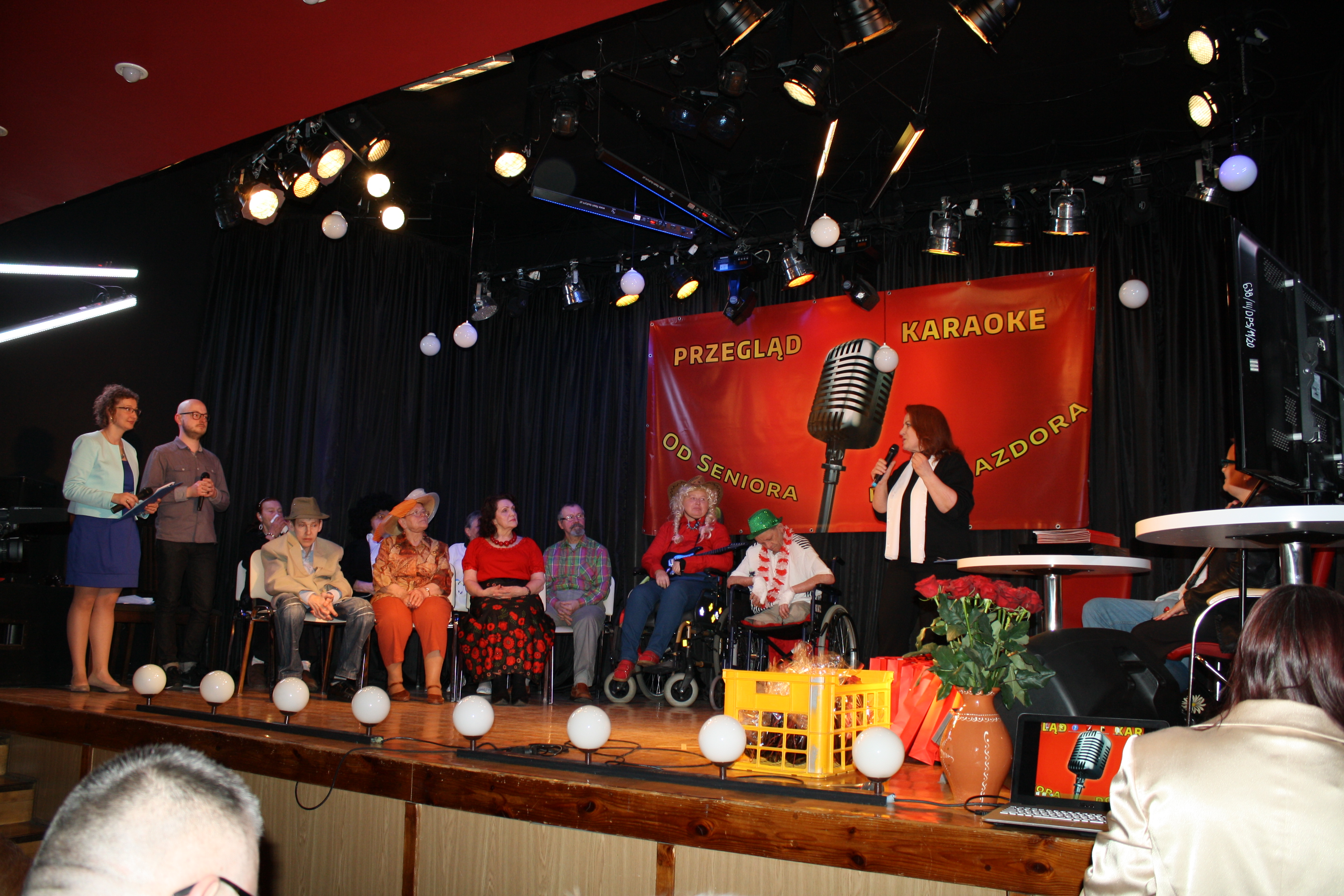 Organizowany przez Dom Pomocy Społecznej „Ostoja” przegląd piosenki Karaoke OD SENIORA DO GWIAZDORA to jedna z pierwszych inicjatyw na Pomorzu. Przegląd piosenki odbył się 27 kwietnia w Domu Sztuki Gdańskiego Archipelagu Kultury. W przeglądzie wzięli udział seniorzy z ośrodków wsparcia z Gdańska, Gdyni, Sopotu, Stegny, Kartuz, oraz Stawisk. Usłyszeliśmy wiele popularnych szlagierów m.in. „Chałupy welcome to”, „Rudy rydz”, „Ale to już było”, „Gdzie się podziały tamte prywatki”. W eliminacjach brała udział również Mieszkanka naszego Domu przy ul. Fromborskiej Pani Jadwiga Matczak. Zaprezentowała utwór Krzysztofa Krawczyka pt. „Zatańczysz ze mną jeszcze raz”. Przygotowania trwały codziennie przez ostatnie tygodnie. Od strony wokalnej bardzo pomogła nam nasza kochana logopeda p. Ania Brych. Pani Jadwiga dzielnie ćwiczyła skalę głosu, właściwy oddech, tonację i wiele innych profesjonalnych technik muzycznych. O stronę wizualną w ścisłej współpracy z Panią Jadwigą zadbała nasza terapeutka p. Marlena Niesiołowska-Pisarczyk. Pani Jadwiga odważyła się przebrać za Krzysztofa Krawczyka, była więc peruka z burzą pełną loków, zalotny wąs, elegancki garnitur, biała koszula i nieodłączna elegancka męska apaszka. Pani Jadwiga tym strojem zrobiła niemałe zamieszanie, bo jurorzy nie wiedzieli czy mają przed sobą Panią Jadwigę, czy Krzysztofa Krawczyka, a wszystkiemu towarzyszyły dobra zabawa, śmiech, oraz integracja. Pani Jadwiga otrzymała wyróżnienie za udział, z czego jesteśmy dumni, bo to niezwykła odwaga, wystąpić na dużej scenie, przy licznej widowni i profesjonalnym jury. Dziękujemy Pani Jadwidze za artystyczny i brawurowy występ, za poświęcenie swojego czasu, oraz zaangażowanie w projekt, za całe mnóstwo pozytywnych wrażeń, bo dzięki takim właśnie osobom pięknieje nasza codzienność oraz oczywiście za to, że godnie reprezentowała Nasz Dom.