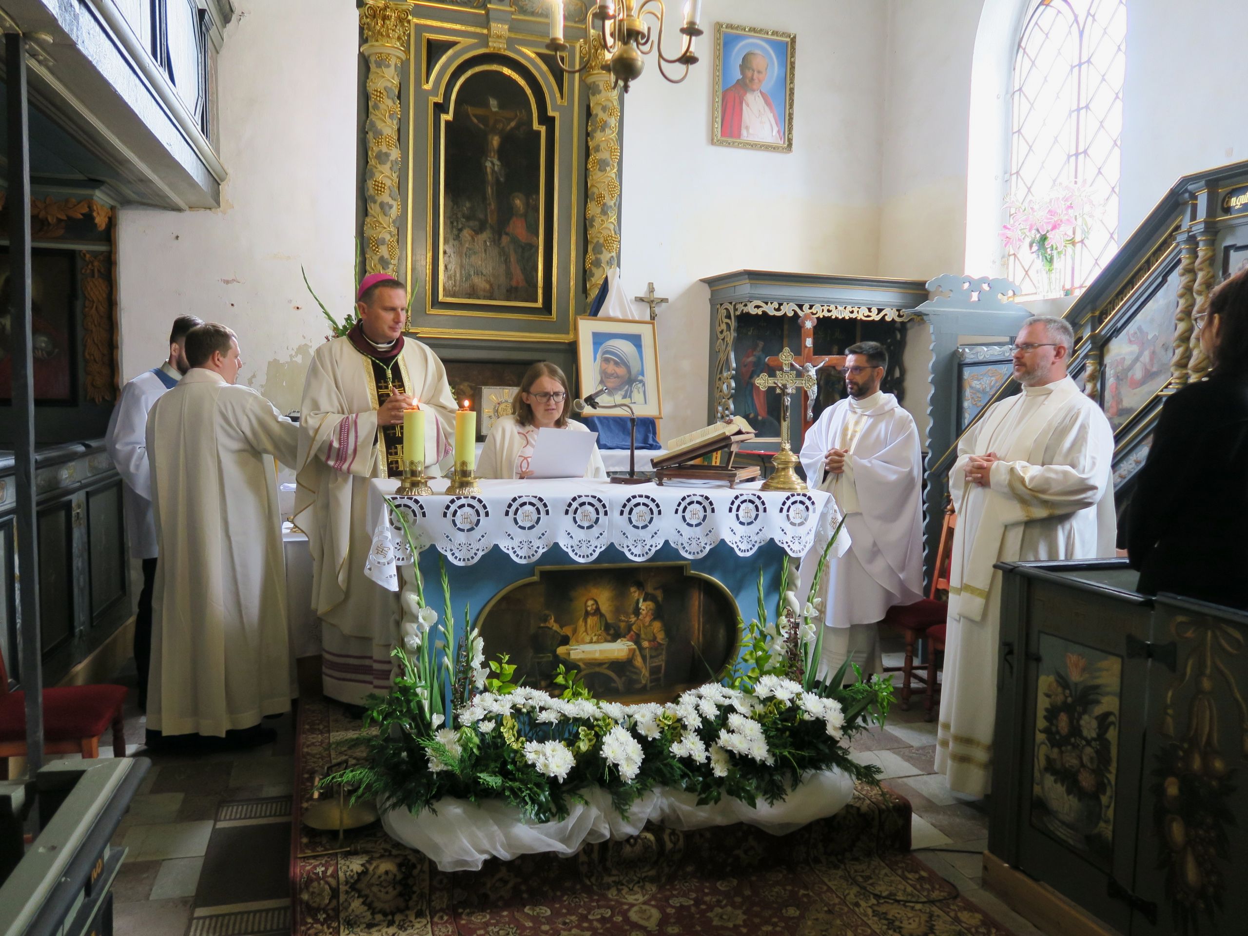 Tegoroczne święto patronalne w Centrum Caritas im. św. Matki Teresy z Kalkuty w Krzywym Kole odbyło się w poniedziałek 5 września. O godzinie 11 przybyli goście zgromadzili się w pobliskim kościele na mszy pod przewodnictwem biskupa pomocniczego Archidiecezji Gdańskiej Piotra Przyborka. O oprawę muzyczną uroczystości zadbał, zyskując powszechne uznanie, nasz nowo zatrudniony na stanowisku terapeuty zajęciowego w WTZ kolega – Paweł. Po mszy, tradycyjnie, wszyscy zgromadzeni udali się do naszej placówki na poczęstunek (choć niektórzy z gości wspominali coś o uczcie, zaskoczeni po raz kolejny fantazją kulinarną oraz pozwalającym wykrzesać wszystko co najlepsze z pracowników i podopiecznych placówki talentem organizacyjnym Agnieszki, terapeutki z pracowni kulinarnej WTZ). Poniżej fotorelacja.