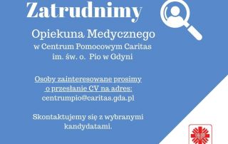Zatrudnimy Opiekunkę/Opiekuna Medycznego w Centrum Pomocy Caritas im. św. o. Pio w Gdyni