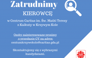 Zatrudnimy Kierowcę w Centrum Caritas im. św. Matki Teresy z Kalkuty w Krzywym Kole