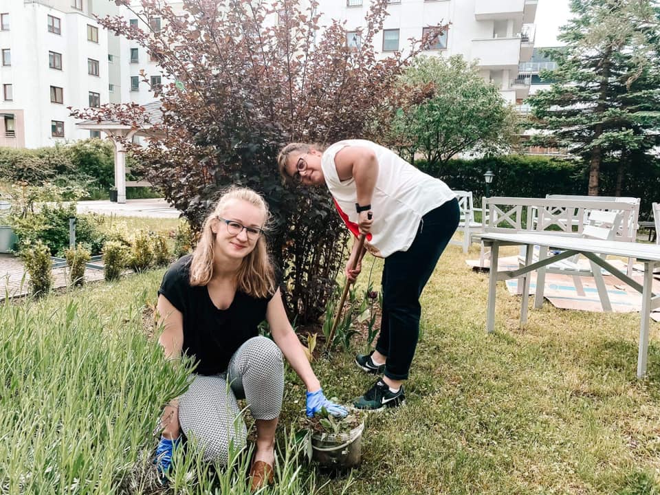 Ogród pięknieje w oczach! A to wszystko za sprawą wspaniałych pracowników, domowników i wolontariuszy. Jak koszenie to kosiarką, jak przycinanie to sekatorem, jak sadzenie to rękoma, jak plewienie to… oczywiście z wykorzystaniem pęsety.