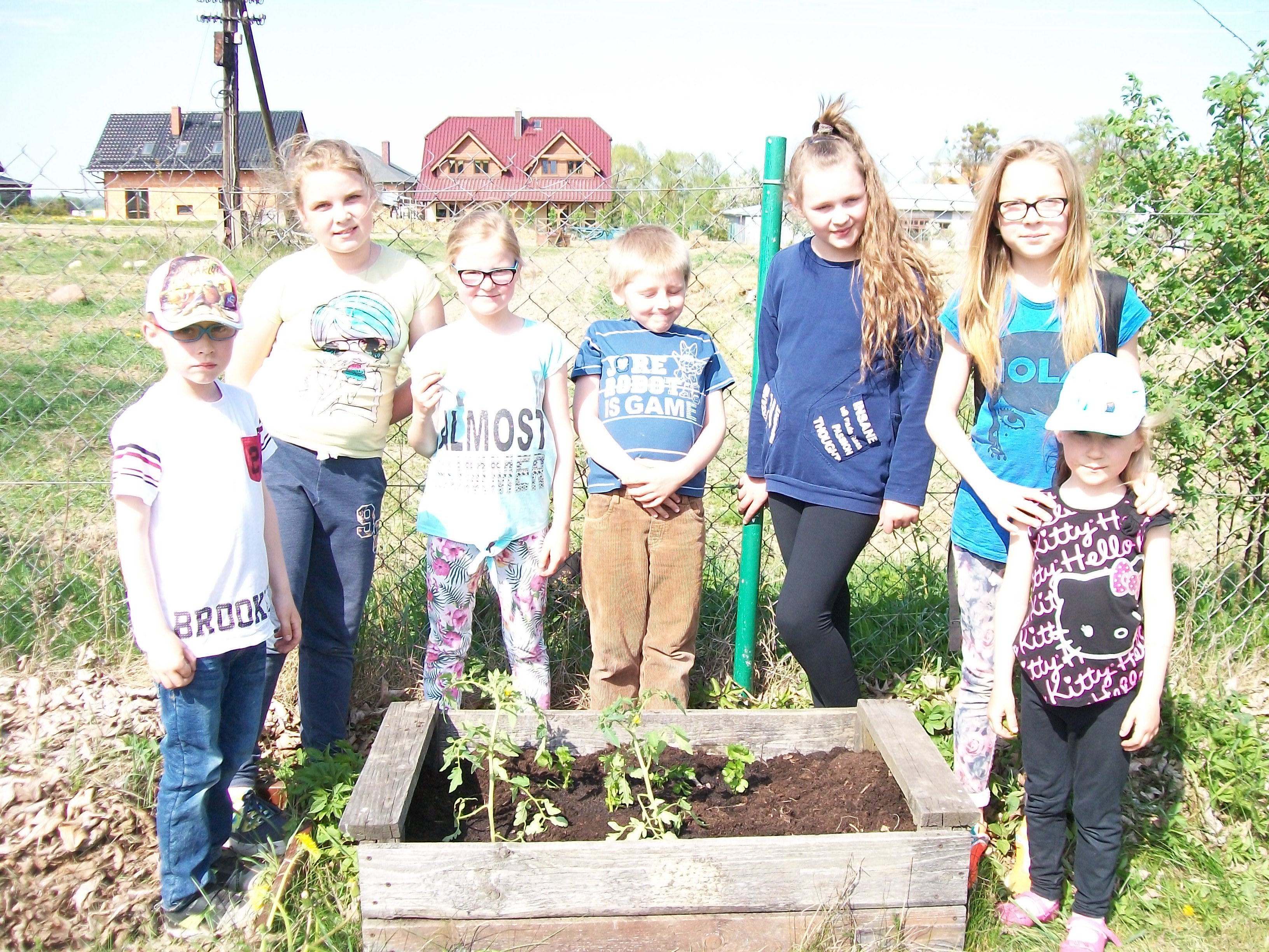 Dzieci ze świetlicy w Przyjaźni założyły swój ogródek za szkołą. Wsadziliśmy pomidory, pietruszkę seler i zioła. Obiecały, że będą roślinki codziennie podlewać, umówili się kto w jaki dzień będzie go podlewał, a w wakacje często jeżdżą tam na rolkach i również będą o niego dbały. Mam nadzieję, że zjemy kanapkę z własnym pomidorkiem.