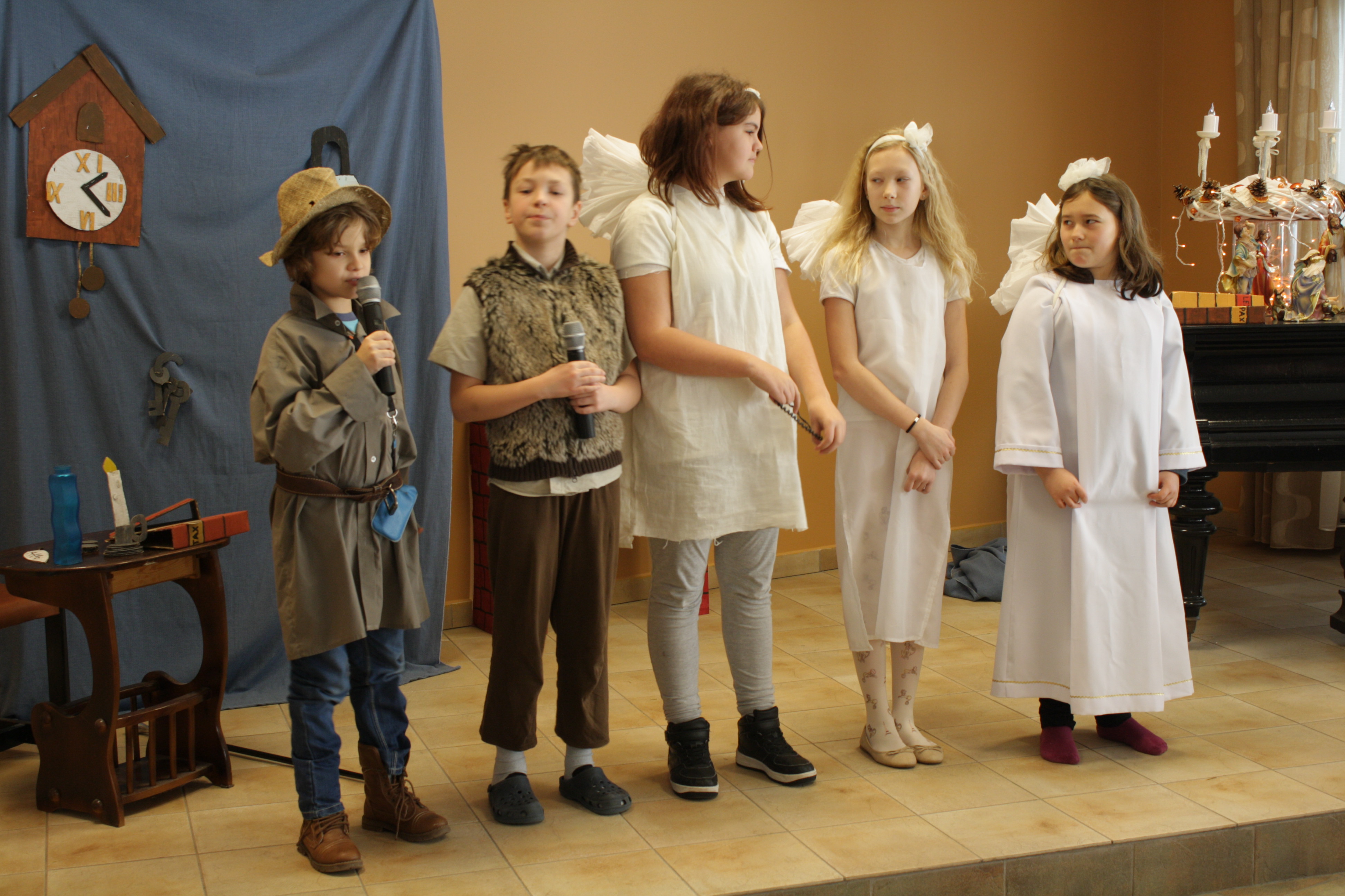 Szkoła Podstawowa nr 9 z Sopotu, przyjechała do Centrum Pomocowego Caritas im. Jana Pawła II z pięknym przedstawieniem pt. „Opowieść Wigilijna”. To pouczające opowiadanie na podstawie powieści Karola Dickensa pokazuje głębokie doświadczenie i przemianę skąpca Ebenezera Scrooge’a, zachodzącą w czasie nocy wigilijnej. Była to postać samotna, nielubiąca ludzi, dbająca jedynie o pomnażanie swojego majątku. W noc wigilijną ukazują się bohaterowi duchy, które pokazują jego przeszłe, teraźniejsze i przyszłe życie. Przerażony wizją beznadziejności przedstawianego życia i wizji samotnej śmierci staje się z powrotem szczodrym i serdecznym człowiekiem.