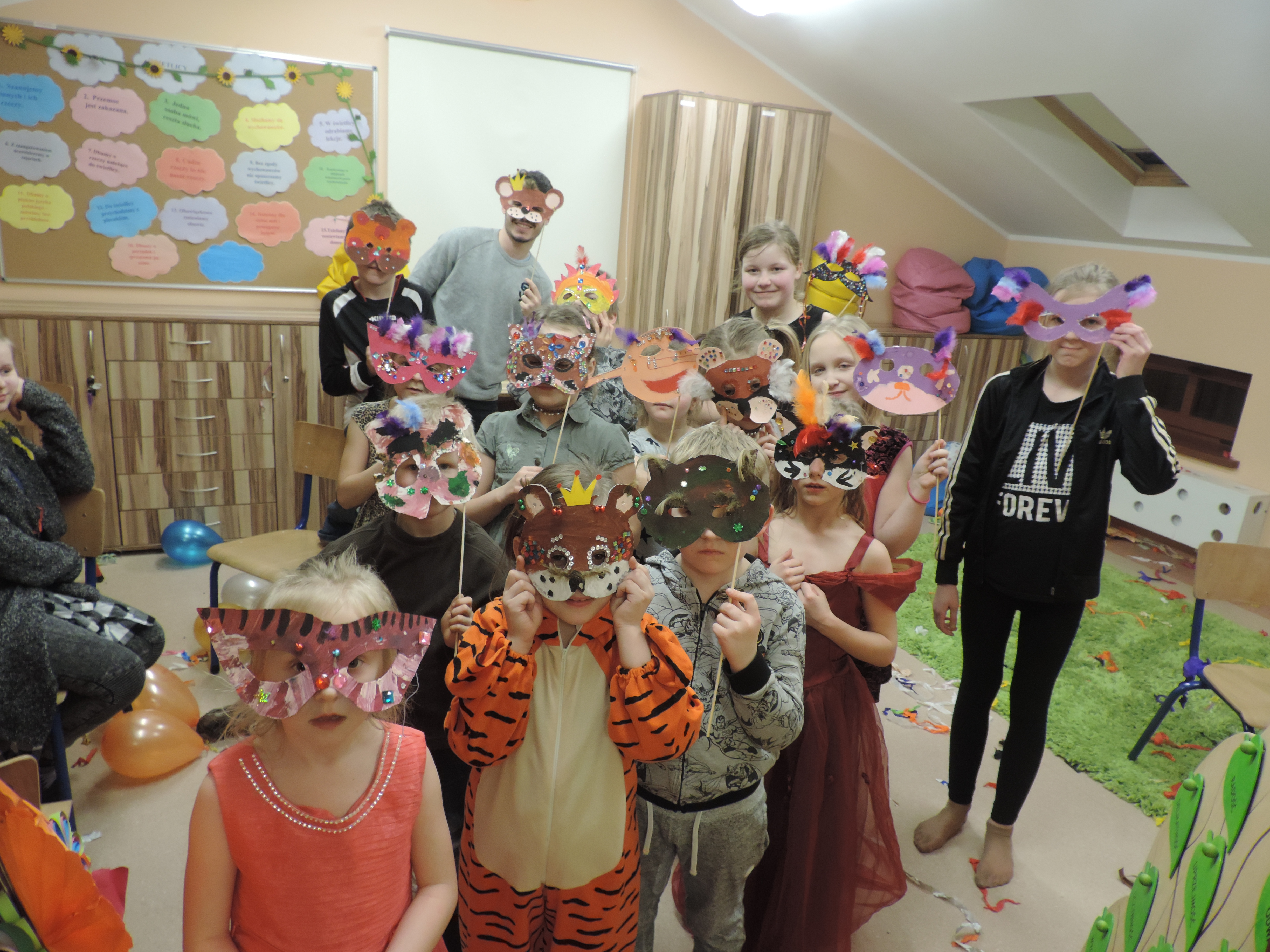 Jak na ostatki przystało, dzisiaj na posiłek były śledzie w śmietanie, a do tego zapiekane ziemniaki. Bardzo nam smakowało, a danie to okazało się kolejnym ulubionym polskim daniem na liście naszego wolontariusza Alvaro. Kiedy się posililiśmy, rozpoczęły się przygotowania do zabawy: rozwiesiliśmy przygotowane wcześniej ozdoby, balony i serpentyny. Gdy wszystko było już gotowe, zaprezentowaliśmy pozostałym swoje przebrania, a maski weneckie okazały się ich doskonałym uzupełnieniem. Przez cały wieczór nie brakowało nam śmiechów i tańców, dobry nastrój nas nie opuszczał. Nie obyło się również bez konkursów ze słodkimi upominkami. Gratulujemy nagrodzonym, a w szczególności Martynie – zwyciężczyni konkursu na najlepszą maskę i Kindze, której zaangażowanie w zabawę i najlepszy taniec również zostały docenione.