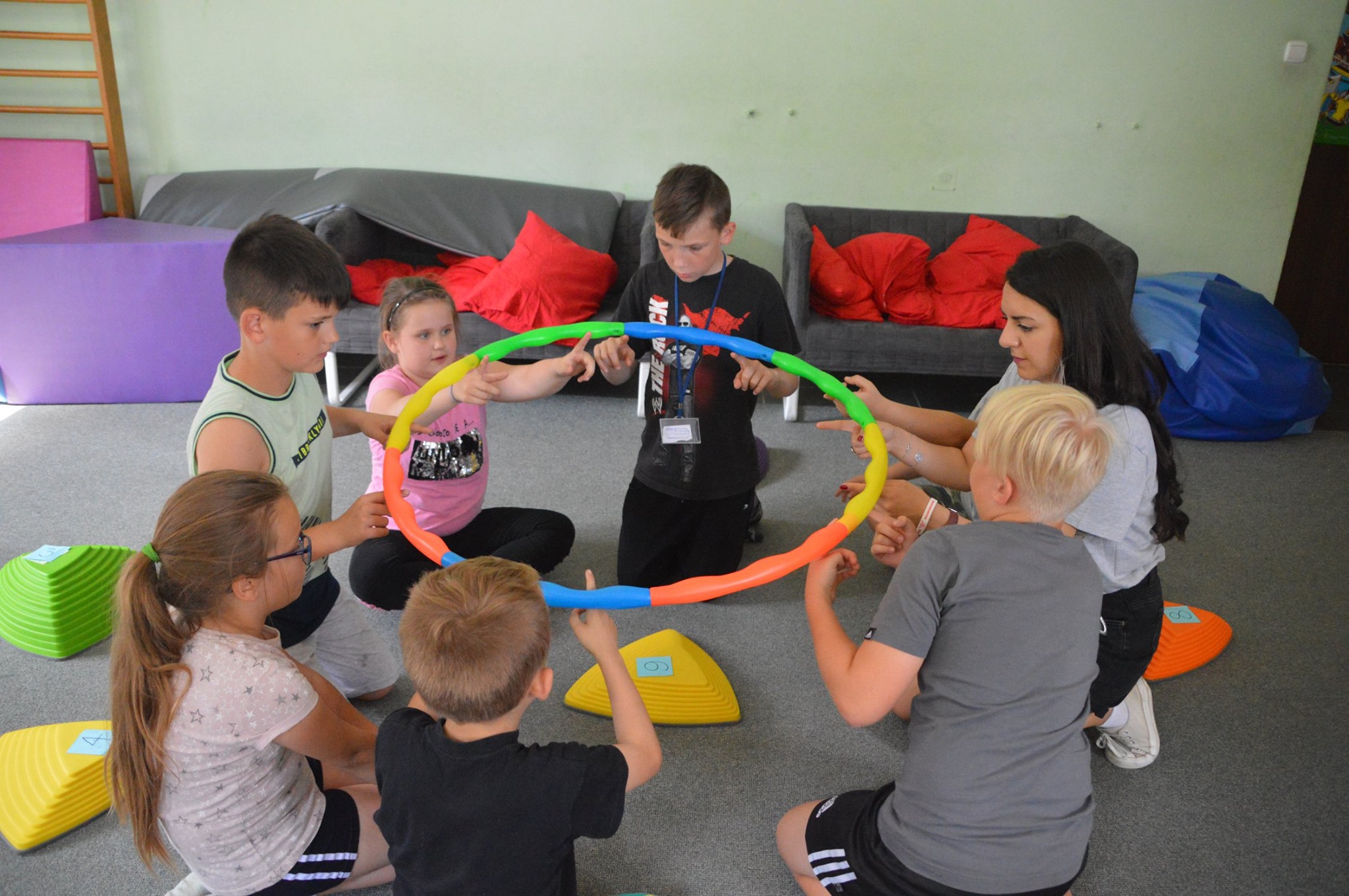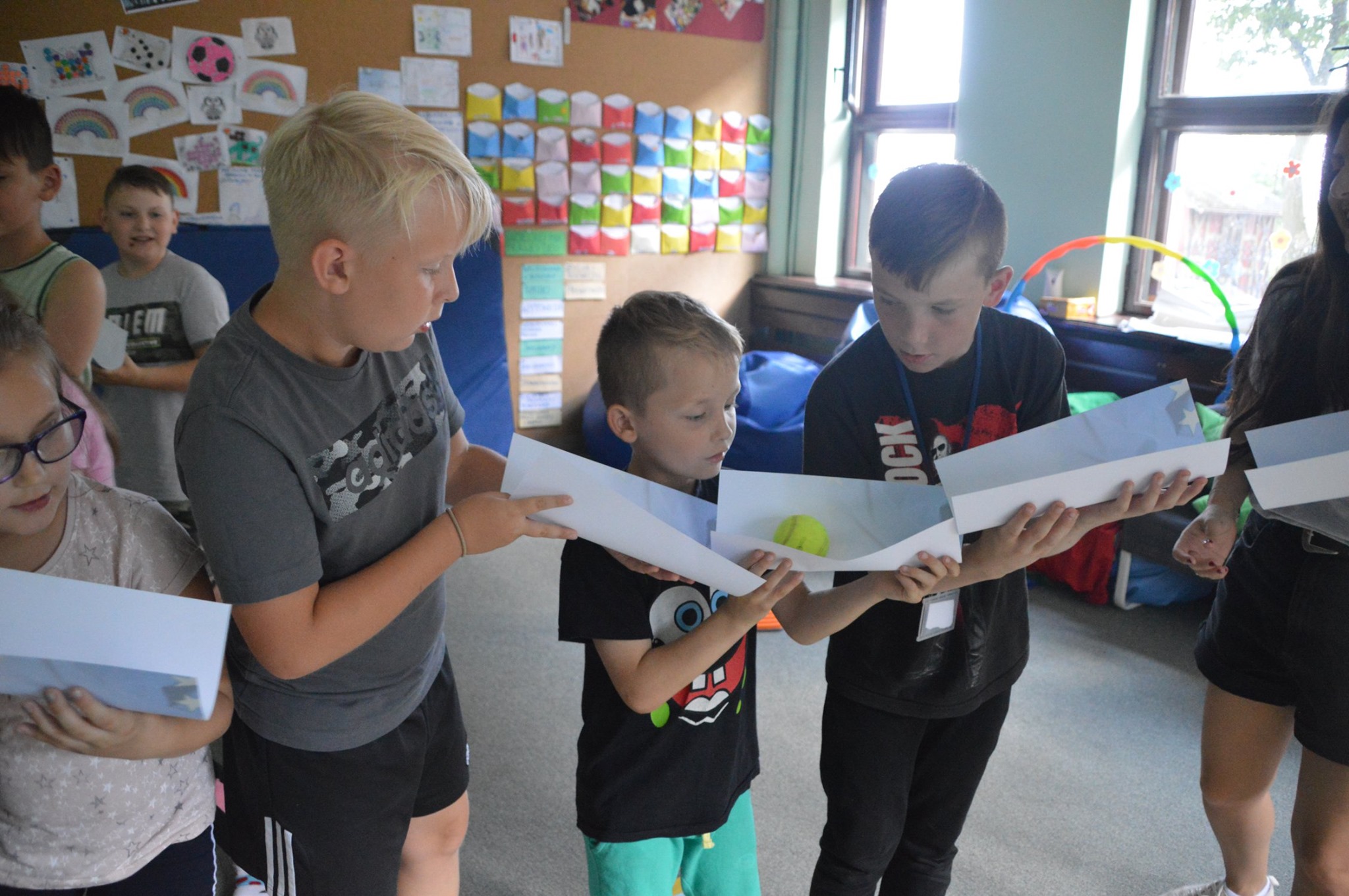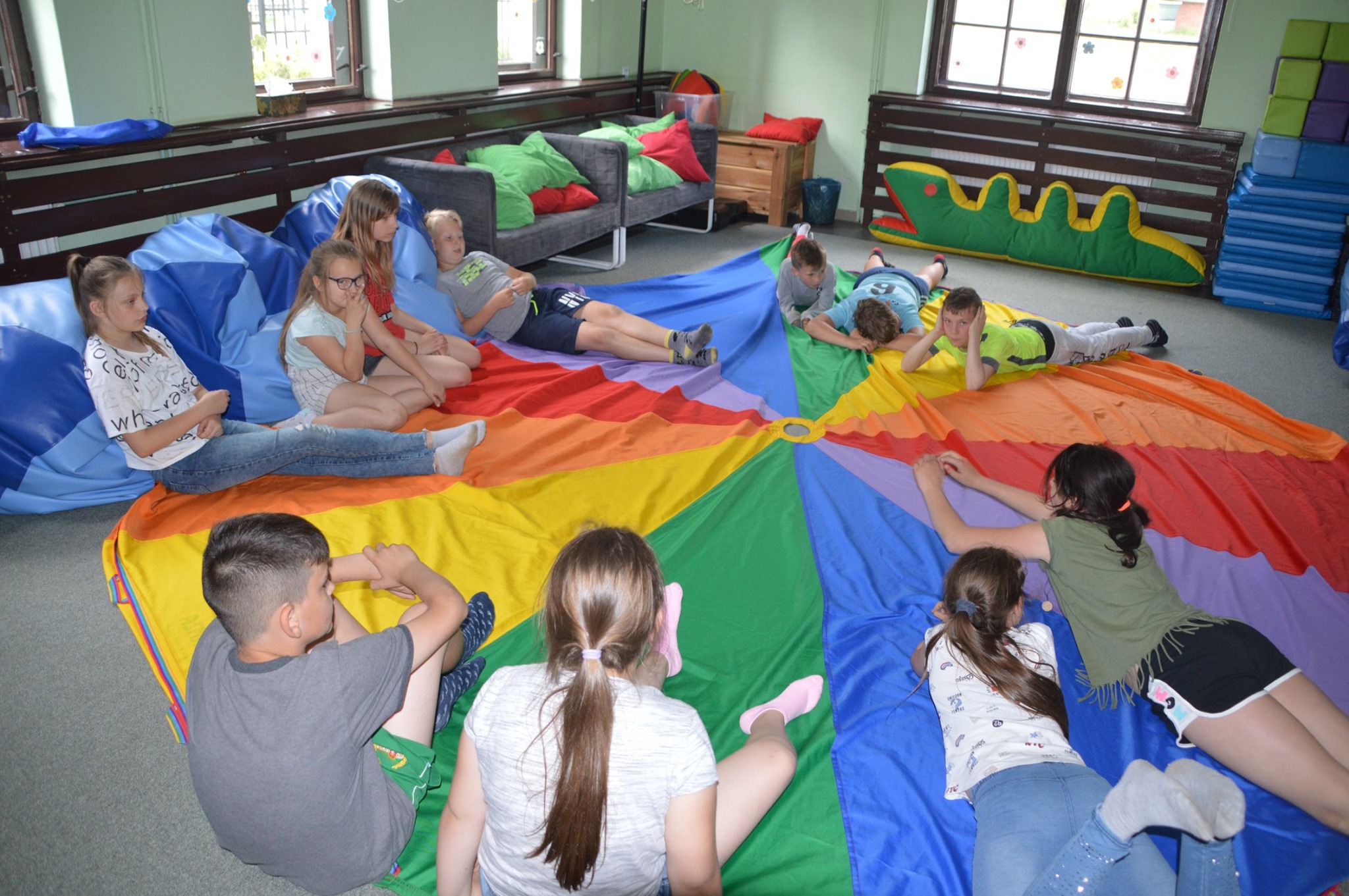 W słoneczne, prawie wakacyjne dni, chętnie planowaliśmy sposób spędzania czasu w świetlicy. Szukaliśmy takich pomysłów, by każdy znalazł coś dla siebie, ale nie pominęliśmy też wspólnych zabaw, które przecież dają mnóstwo radości. Dlatego były gry z chustą animacyjną, piłka nożna, zbijak, tory przeszkód oraz wiele, wiele innych, lubianych przez nas gier i zabaw.