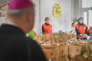 Ten dzień stał się wyjątkowy również dzięki obecności księdza biskupa Wiesława Szlachetki, który poświęcił paczki z żywnością nazywając je „święconkami dla potrzebujących”.
