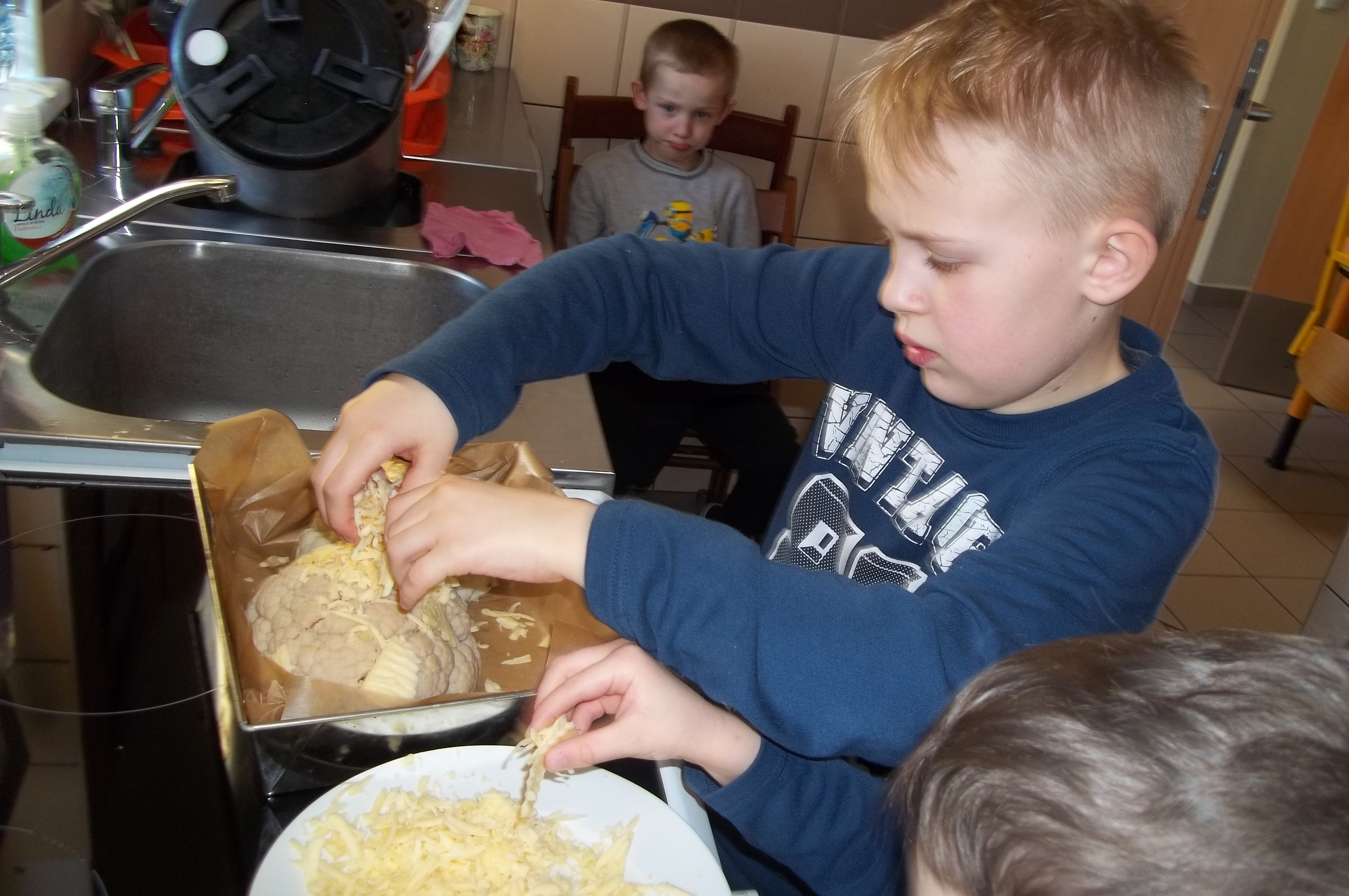 W ramach programu pt. „Żółty Talerz” (finansowanego przez Kulczyk Foundation) w świetlicy Caritas w Glinczu możemy przygotowywać i kosztować wiele pysznych posiłków. W minionym miesiącu tematem przewodnim był „pan Brokuł” i „ pan Kalafior”. Dzieci przygotowały pyszną i zdrową sałatkę, składającą się z brokuła, sera feta, słonecznika oraz sosu czosnkowego. Innego dnia skupiliśmy się na kalafiorze, z którego powstała pyszna zapiekanka z żółtym serem.