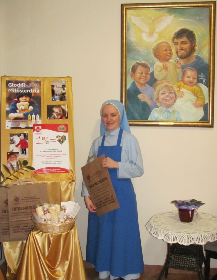 – każdy odwiedzający nasz Dom ma możliwość włączenia się w dzieło miłosierdzia poprzez zakup świecy Caritas na stół wigilijny oraz zaangażowania się w „tutki miłosierdzia”,
