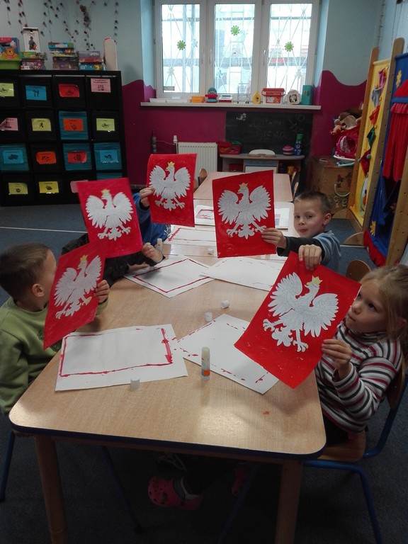 Dzieciaki z grupy „Radosne Krasnale” przygotowywały się do obchodów Święta Niepodległości. Wychowankowie poznali jak wygląda godło Polski i przygotowali piękne prace plastyczne, ponadto nauczyli się wierszyka „Kto ty jesteś?”, który z dumą recytowali.