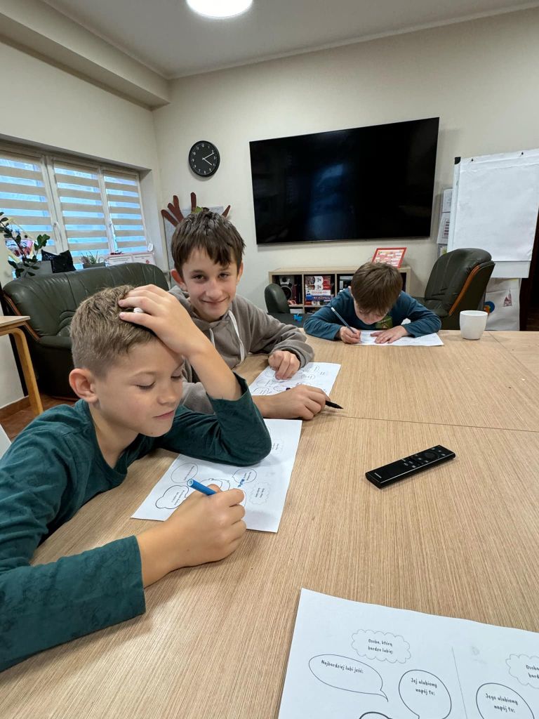 Ostatnio czas poświęcamy nie tylko na zabawę ale bierzemy udział w super projektach dotyczących nauki. Bierzemy udział w Dziecięcym Uniwersytecie Ekonomicznym na którym poznajemy tajniki ekonomi w przystępny sposób i co najważniejsze możemy się poczuć jako studenci Politechniki Gdańskiej, odwiedzili nas również przedstawiciele Fundacji Support z którymi mieliśmy okazję porozmawiać o tym czym jest kryzys i jak sobie z nim radzić oraz uczyliśmy się chemii od uczniów z III LO z Gdyni którzy pokazali nam ciekawe doświadczenie chemiczne i to, że chemia może być super. Szalejemy również na zajęciach z naszą Panią Lidką, rozmawiamy o emocjach stresie oraz komunikacji. Żeby nie było cieszymy się też jesienią na długich spacerach i tworząc uda z owoców jesieni.