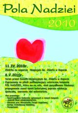 Mniej więcej o tej porze, rok temu ogłosiliśmy konkurs plastyczny na plakat PÓL NADZIEI 2010. Został on rozstrzygnięty na pikniku podsumowującym ubiegłoroczną zbiórkę publiczną na rzecz Domu Hospicyjnego w Sopocie – wygrała praca Kasi Rosińskiej, uczennicy Gdańskiej Szkoły Podstawowej LINGWISTA w Gdańsku (dziś przewodniczącej prężnie działającego Szkolnego Koła Caritas).