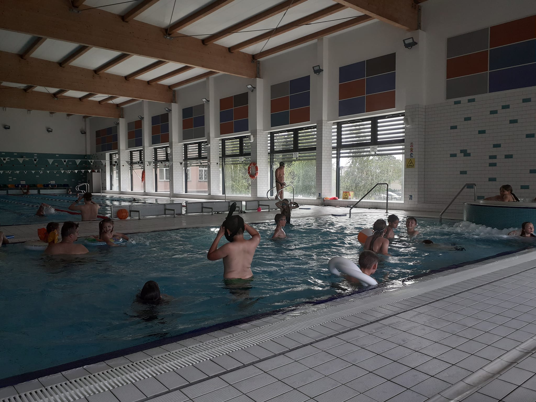 Oglądaliśmy Teatr Wybrzeże od kuchni oraz byliśmy tam na lekcji teatralnej, pływaliśmy w basenie i  szaleliśmy w Parku Oruńskim.