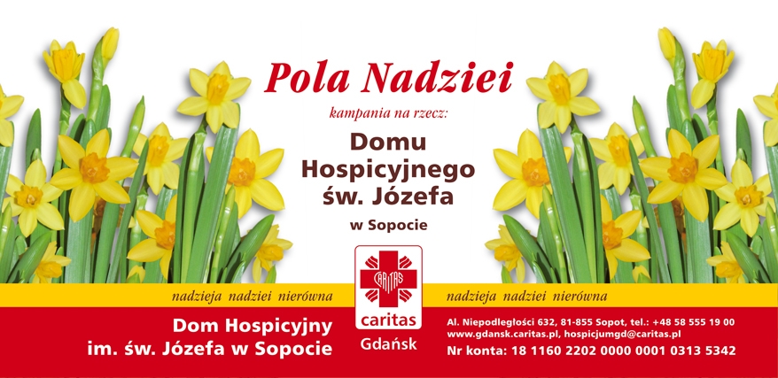 Pola Nadziei to coroczna kampania prowadzona przez hospicja. Ma ona dwie odsłony – pierwszą jesienną, kiedy sadzone są cebulki żonkili – jako zalążki nadziei.  Podczas drugiej – wiosennej, kiedy żonkile kwitną – wolontariusze zbierają fundusze na prowadzenie opieki hospicyjnej. Opieka w naszym Domu jest udzielana chorym bezpłatnie.