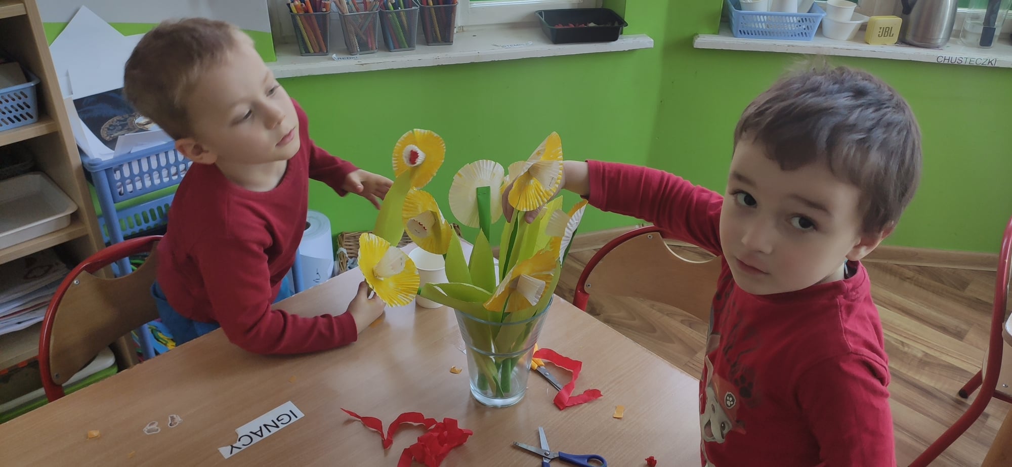 Czuła troska o cebulki, które Im pięknie wrosły i zakwitły oraz wspaniałe żonkile wykonane Ich rękoma jako wsparcie dla dzieci w hospicjach.