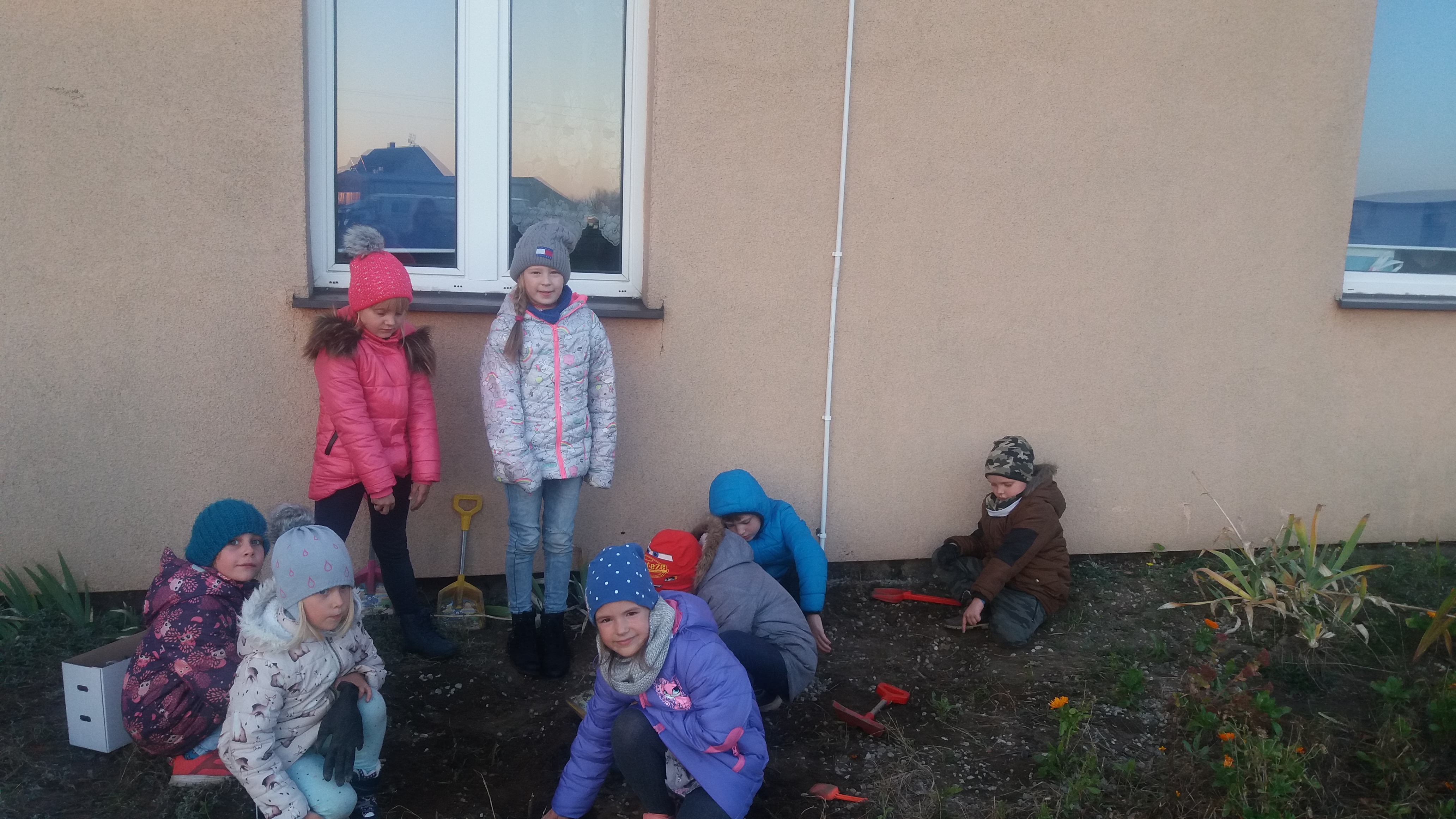 Jesień jest najlepszym czasem na sadzenie drzew, krzewów, zarówno owocowych, jak i ozdobnych. W październiku i na początku listopada siejemy rośliny jednoroczne, które zakwitną w przyszłym roku. W związku z tym, że chcieliśmy zrobić coś dobrego dla innych i dla siebie też, zasadziliśmy sadzonki żonkili – symbol nadziei i wsparcia dla hospicjum. Przy okazji posadziliśm też kolorowe hiacynty. Teraz musimy poczekać do wiosny na rezultaty naszej pracy. Dzięki temu zadaniu nauczyliśmy się jak należy pracować w ogrodzie. Było to bardzo miłe, przyrodnicze doświadczenie.
