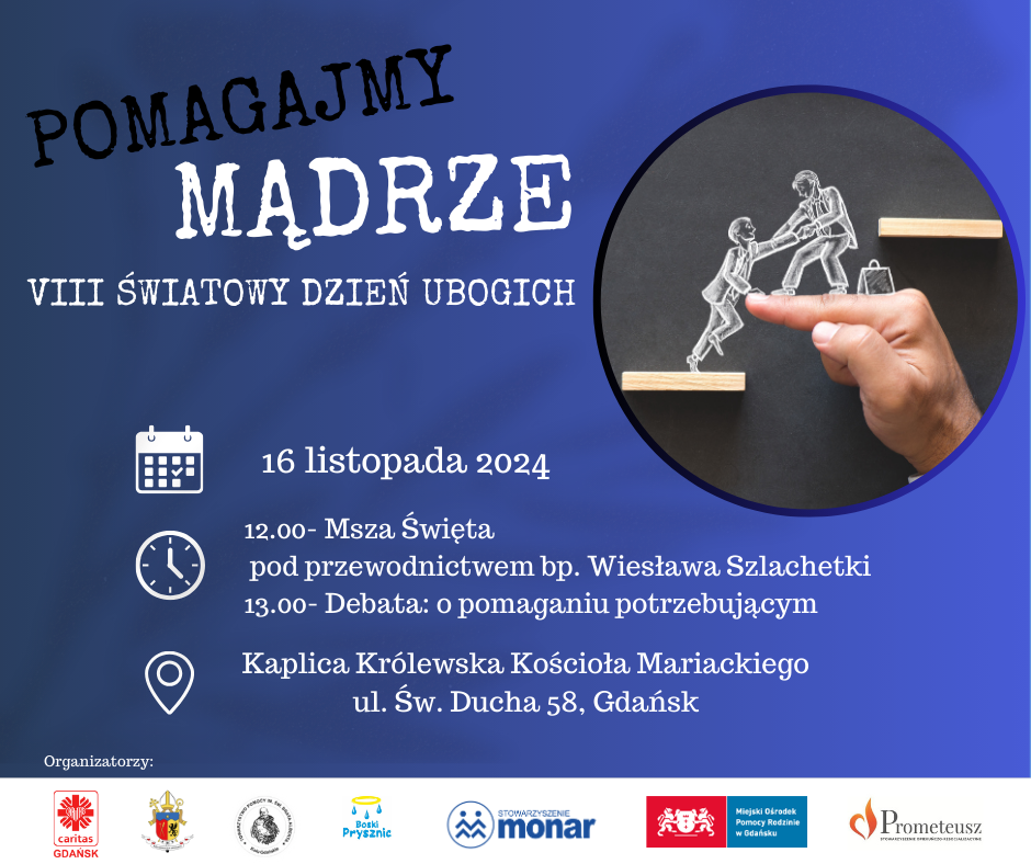 W dniach 16-17 listopada jako organizacje na co dzień działające na rzecz osób doświadczających bezdomności i ubogich zachęcamy do wspólnej rozmowy i debaty o mądrym pomaganiu. Zwrócimy wspólnie uwagę na potrzebę pomocy osobom ubogim, które każdego dnia wymagają naszego wsparcia, empatii i opieki.