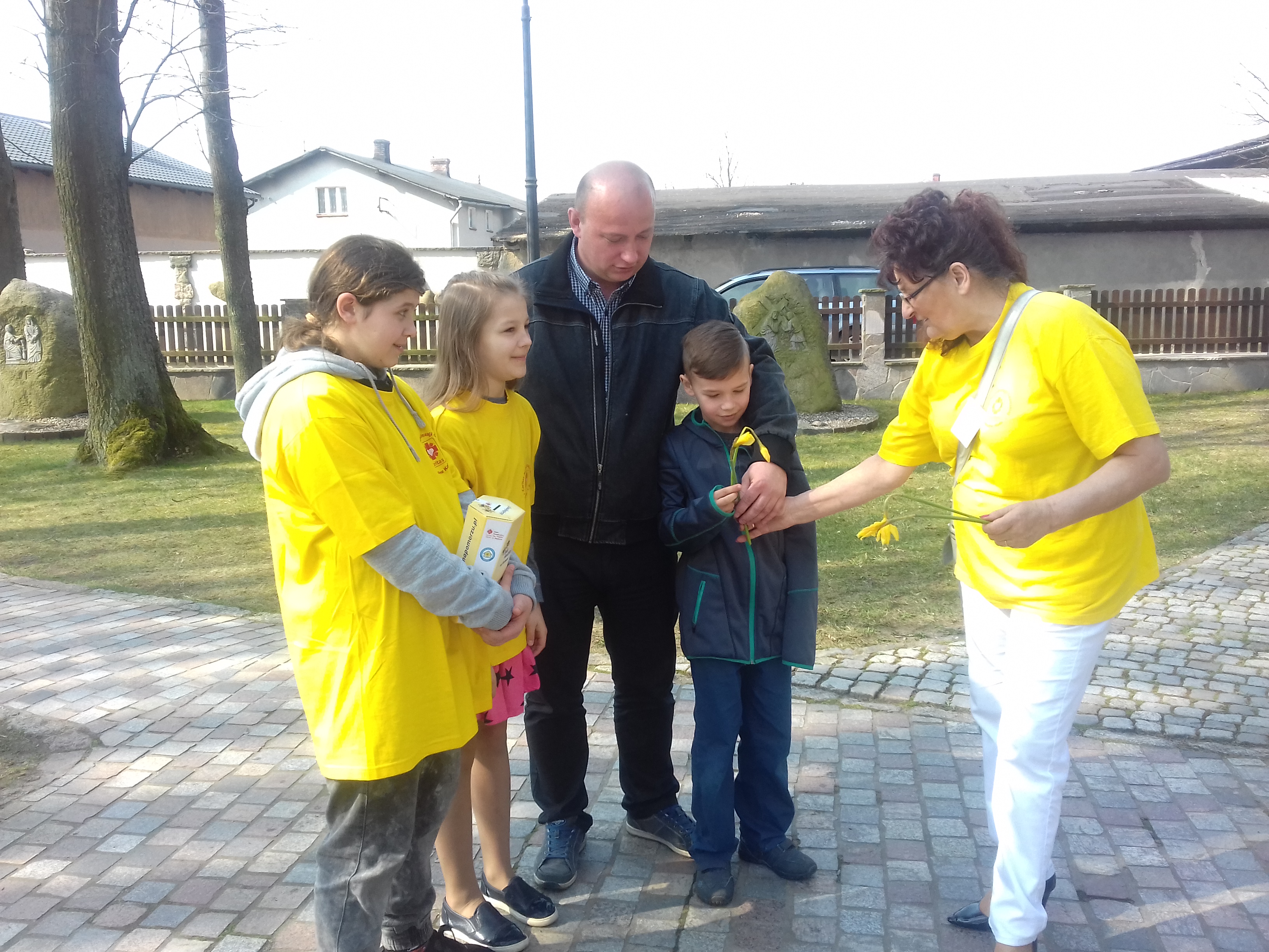 Henrykiem Zielińskim oraz niezawodnymi wolontariuszkami zorganizował kwestę przed kościołem po mszach świętych o godz. 8.00 i 11.00. Ludzie nie żałowali pieniędzy na tak szczytny cel. W zamian otrzymywali symbolicznego żonkila od wolontariuszek. Udało się zebrać ponad 1.600,00 złotych.