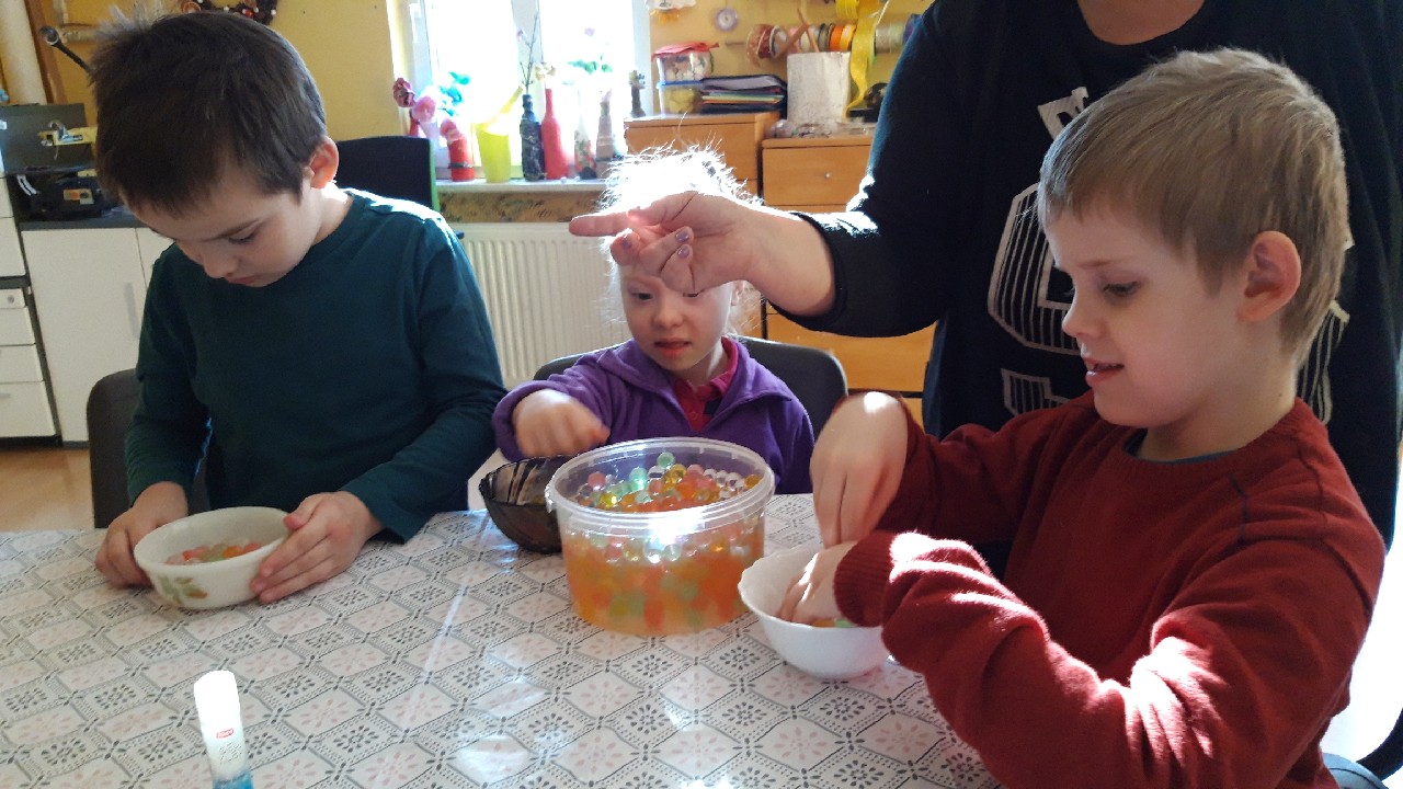 W projekcie pn Kierunek Samodzielność w placówce w Łapinie terapeuci przygotowują i prowadzą różnorodne zajęcia tak by uczestnicy projektu usprawniali wszystkie zmysły, niezbędne do codziennego funkcjonowania. Podczas ostatnich zajęć dzieci ćwiczyły wycinanie i cięcie nożyczkami, uczyli się nazw kolorów.