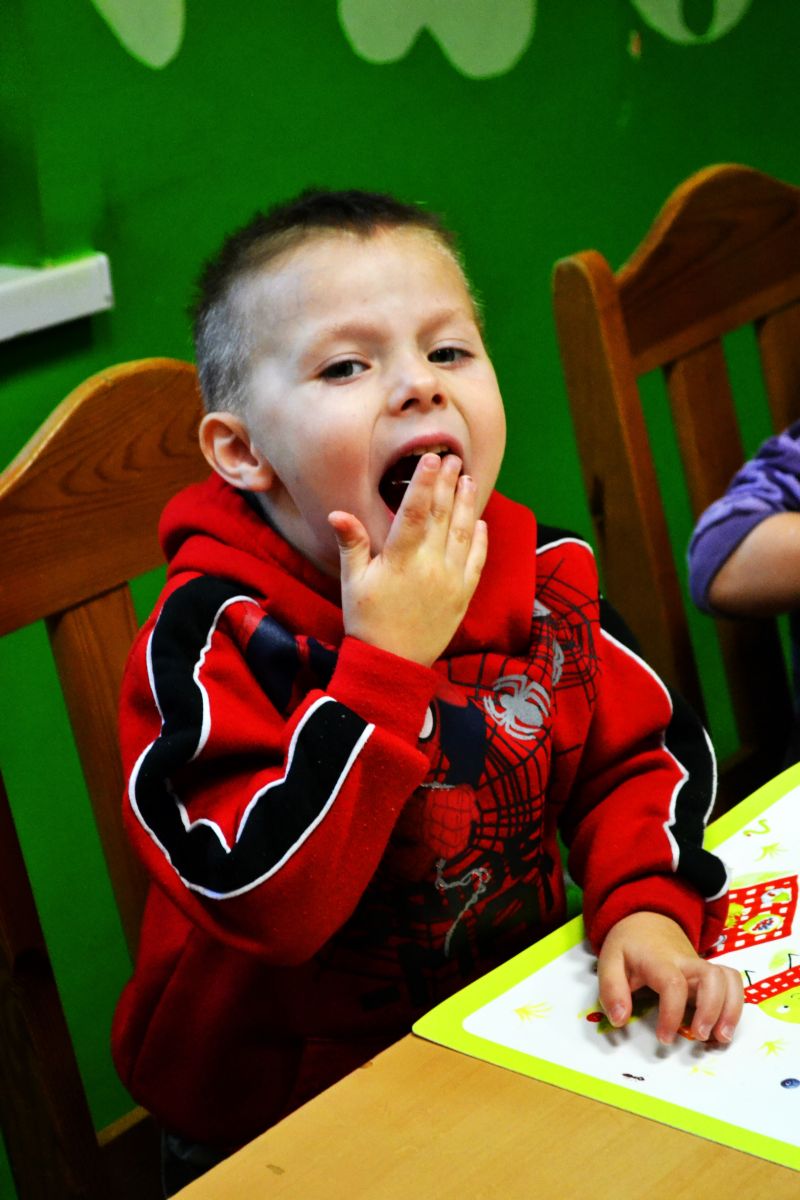 Krasnale z Jesionowej dostały po obiedzie nietypowy deser – galaretkę. Mogły ją dotykać, wąchać i smakować. Galaretka bardzo dzieciom smakowała, a jedzenie jej rączkami dostaczyło im wiele radości. Była to doskonała okazja do pobudzenia zmysłów węchu, smaku i dotyku.