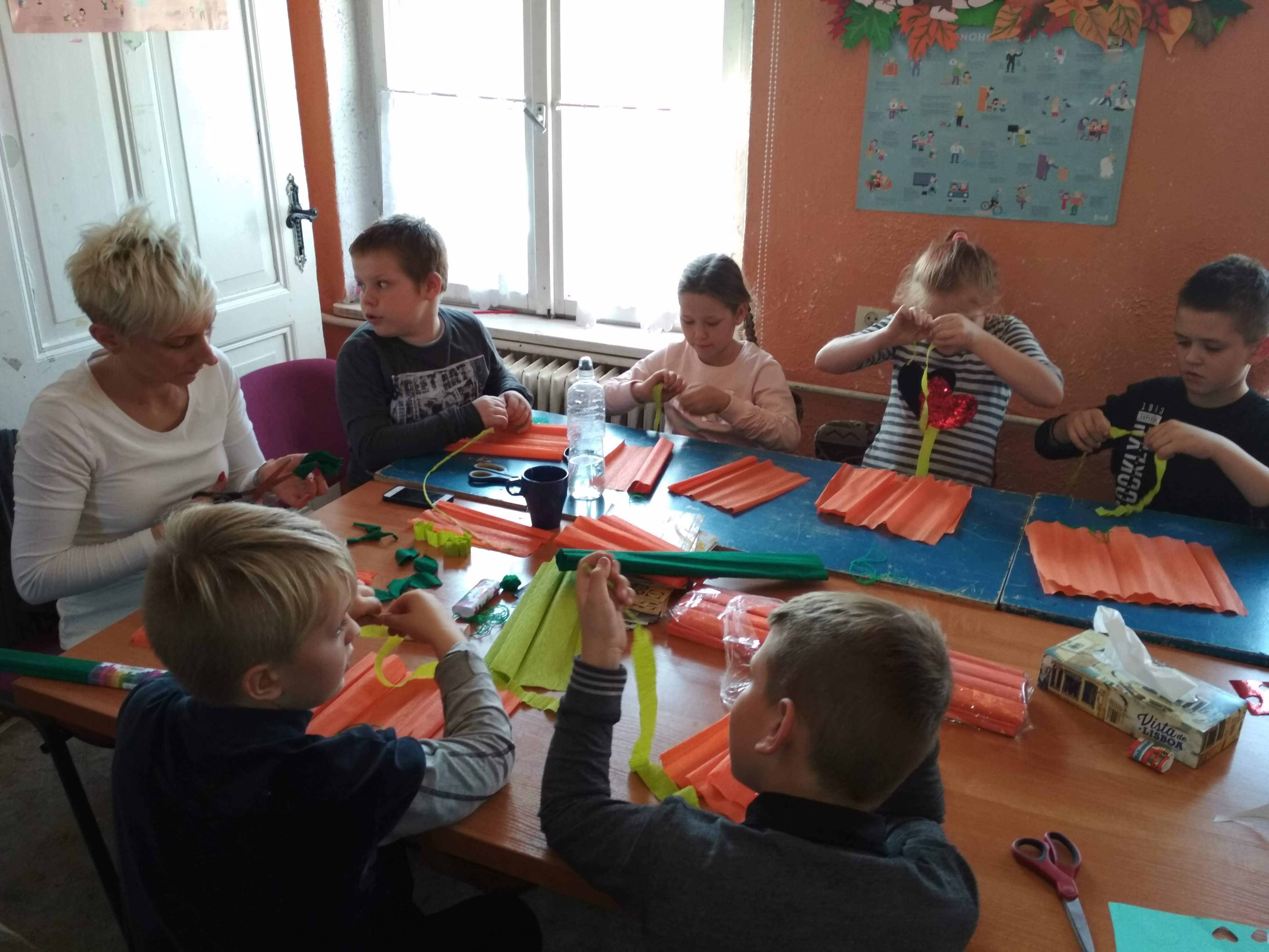Jesienny miesiąc październik minął w świetlicy bardzo szybko. W połowie miesiąca przygotowywaliśmy kartki z okazji Dnia Edukacji Narodowej dla swoich ulubionych nauczycieli. W świetlicy zmieniliśmy gazetkę oraz przygotowaliśmy dekorację na tablicach. Dynie z krepy pojawiły się na parapetach. Kulinarnie rozwijaliśmy swój talent: piekliśmy łososia z batatami, zrobiliśmy zupę meksykańską, tortillę z kurczakiem oraz sałatkę nicejską i zupę dyniową. Dzięki udziału w programie „Żółty Talerz” Fundacji Kulczyka dzieci poznają różne smaki. W tym miesiącu zrobiły koktail owocowy, z gruszki i jabłka oraz bananów. Dawka witamin przyda nam się podczas jesiennej pogody. Pod koniec miesiąca gościliśmy u siebie Panią Krystynę, która przeprowadziła bardzo ciekawe warsztaty „Jak radzić sobie z emocjami”. jest to część programu „Dobry Profil” realizowanego przez Caritas Archidiecezji Gdańskiej. Dzieci z zaangażowaniem uczestniczyły w zajęciach. Zapraszamy do galerii zdjęć.