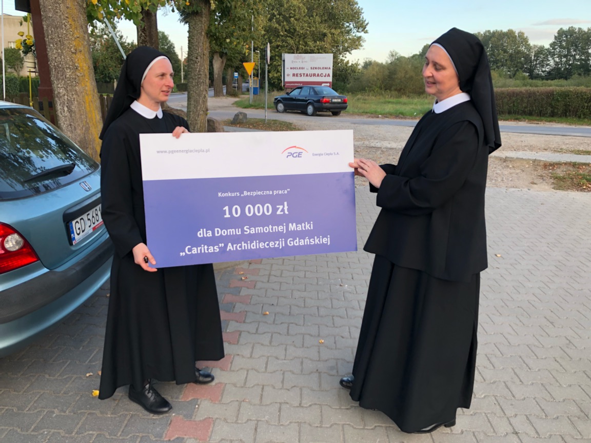 W tym roku pracownicy PGE postanowili przeznaczyć w ramach konkursu ” Bezpieczna praca” 10 000 zł dla „Caritas” Archidiecezji Gdańskiej Organizacji Pożytku publicznego, Domu Samotnej Matki Caritas w Matemblewie.