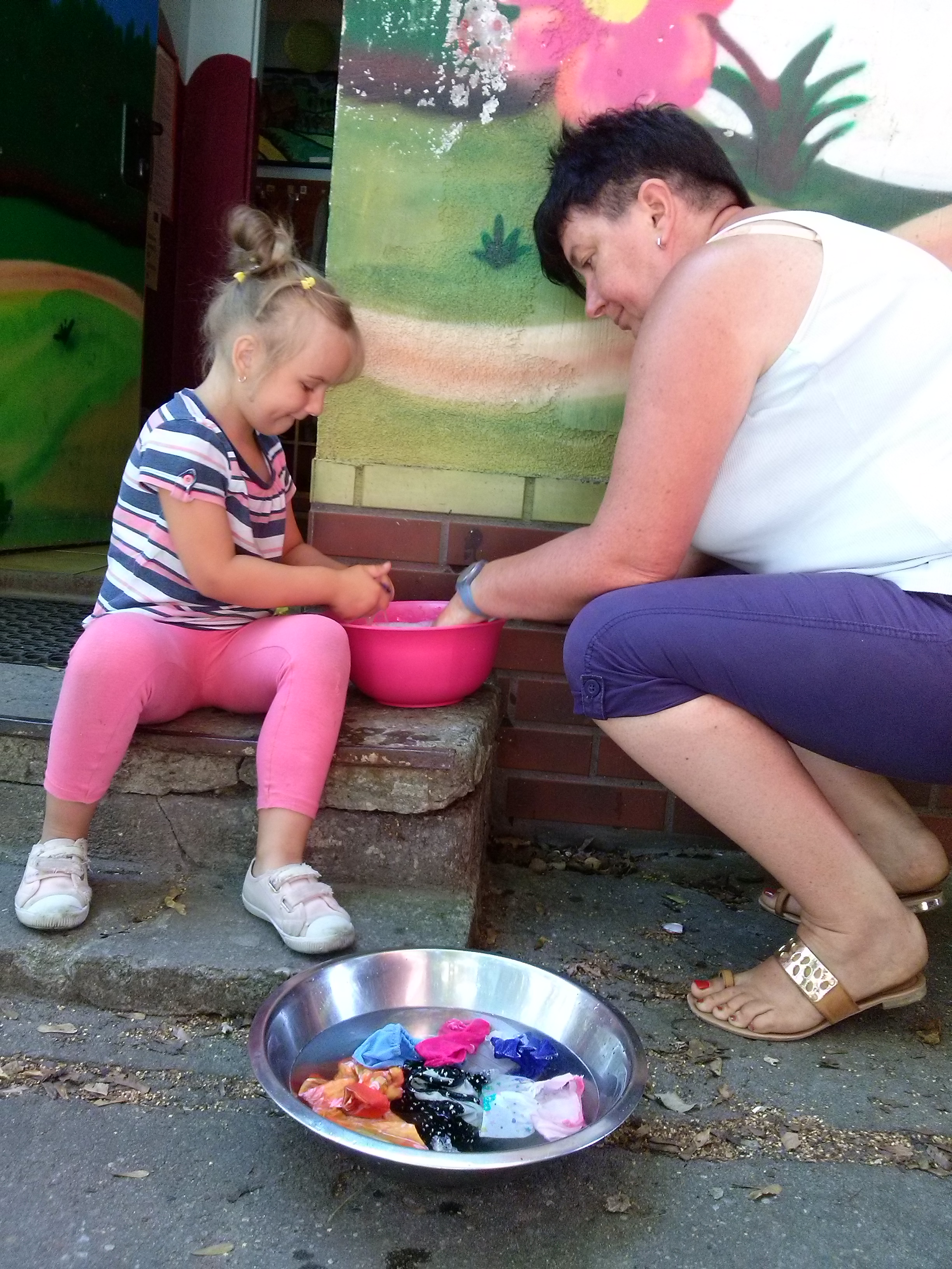 Pani Gosia, nasza ulubiona (i jedyna) stażystka uczyła podopiecznych jak ręcznie prać ciuszki dla lalek. Zaangażowanie dzieci było ogromne, a samo pranie okazało się być świetną zabawą! Nie wątpimy, że wpływ na to miała Pani Gosia, która swoim entuzjazmem i dobrym humorem zaraża nas od początku roku 🙂 dziękujemy za tę cenną lekcję!
