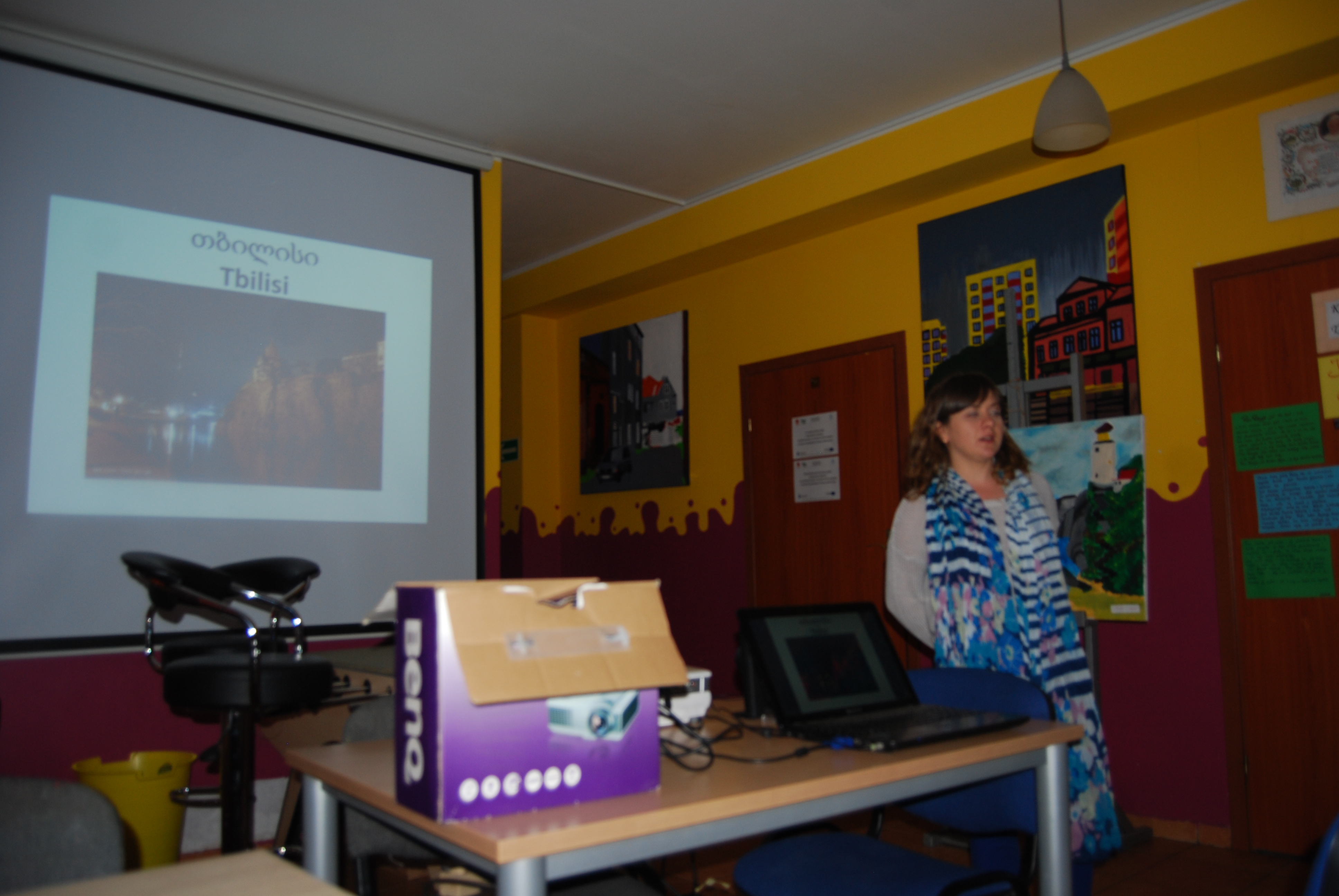 Goszcząca u nas od początku czerwca wolontariuszka EVS z Gruzji, Gvantsa przygotowała dla młodzieżowej grupy „Sparta” prezentację multimedialną na temat swojego kraju. Młodzież z zaciekawieniem zapoznawała się z językiem i pismem gruzińskim, mapą, religią, zabytkami, krajobrazami, tradycyjnymi strojami i innymi elementami kultury gruzińskiej. Po prezentacji odbył się „quiz wiedzy o Gruzji”, w którym wszyscy chętnie wzięli udział. Dziękujemy Gvantsa za tę ciekawą lekcję!