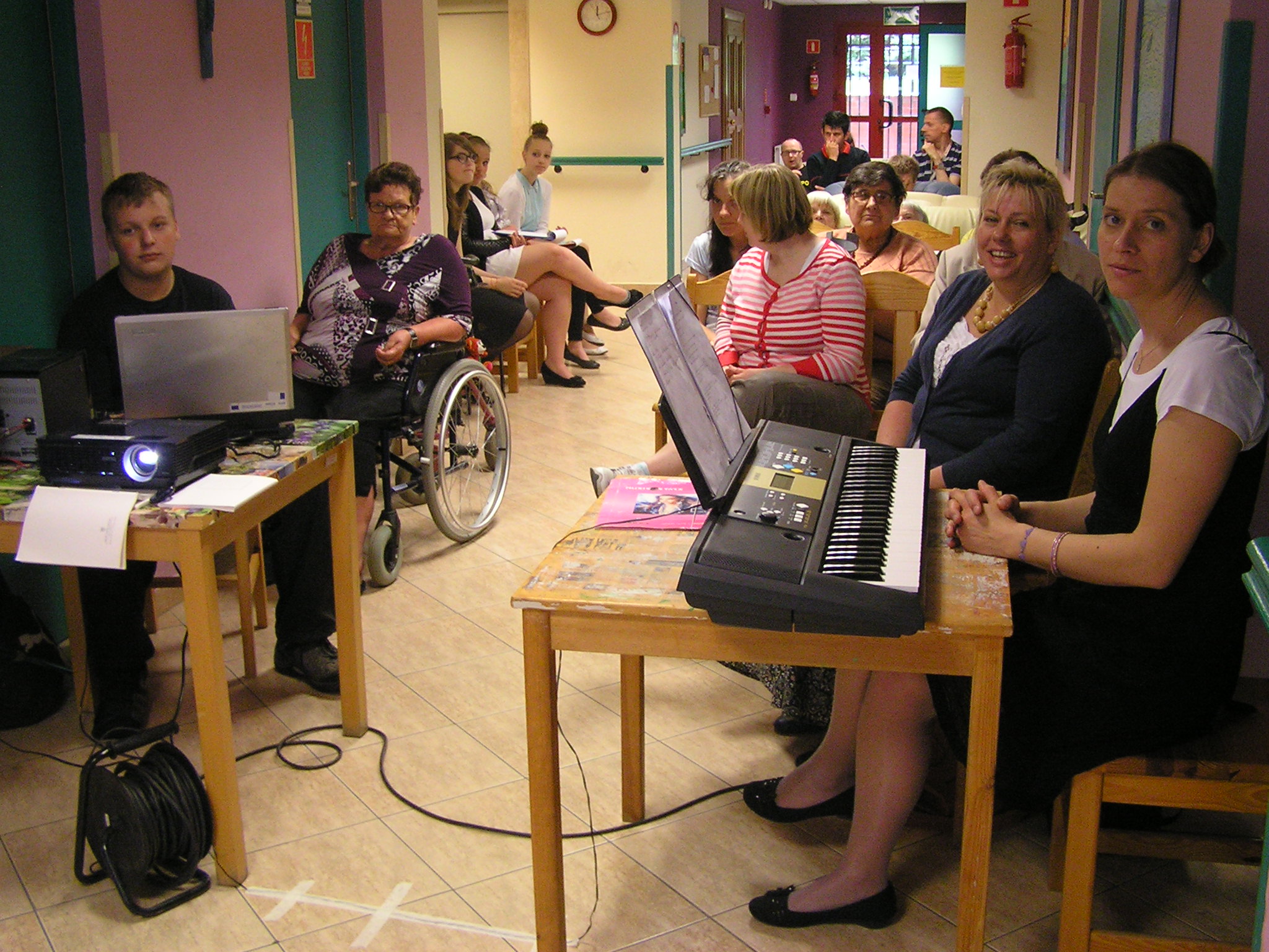 Występ składał się z multimedialnego połączenia zdjęć, pieśni i wierszy o życiu i posłudze duchowej Karola Wojtyły. Uczniom gimnazjum akompaniowała Pani Anna, a nad całością czuwała Pani Grażyna. Występ sprawił dużo radości pacjentom oddziału rehabilitacji i uczestnikom WTZ. Na zakończenie spotkaliśmy się przy wspólnym stole ze słodkościami, na którym nie zabrakło również słynnych kremówek papieskich.